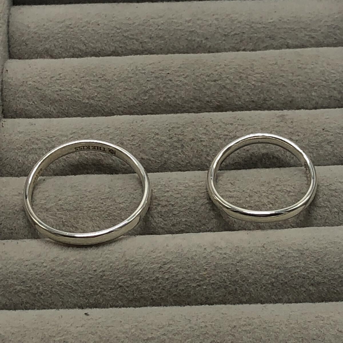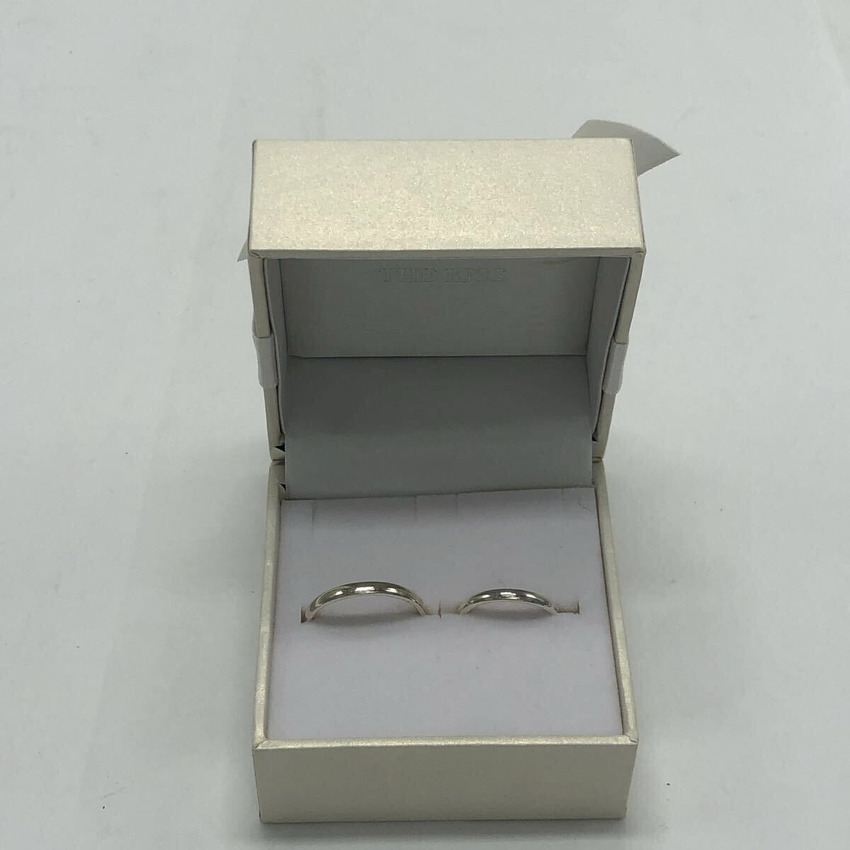・品名:THE KISS ペアリング 2点 セット 指輪 ウェーブ 白色石付リング 箱付き SILVER 中古 KH UEAW