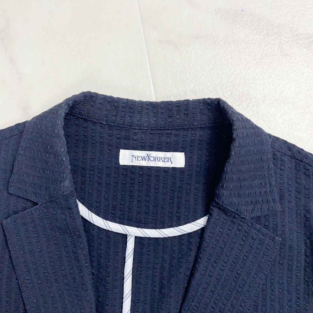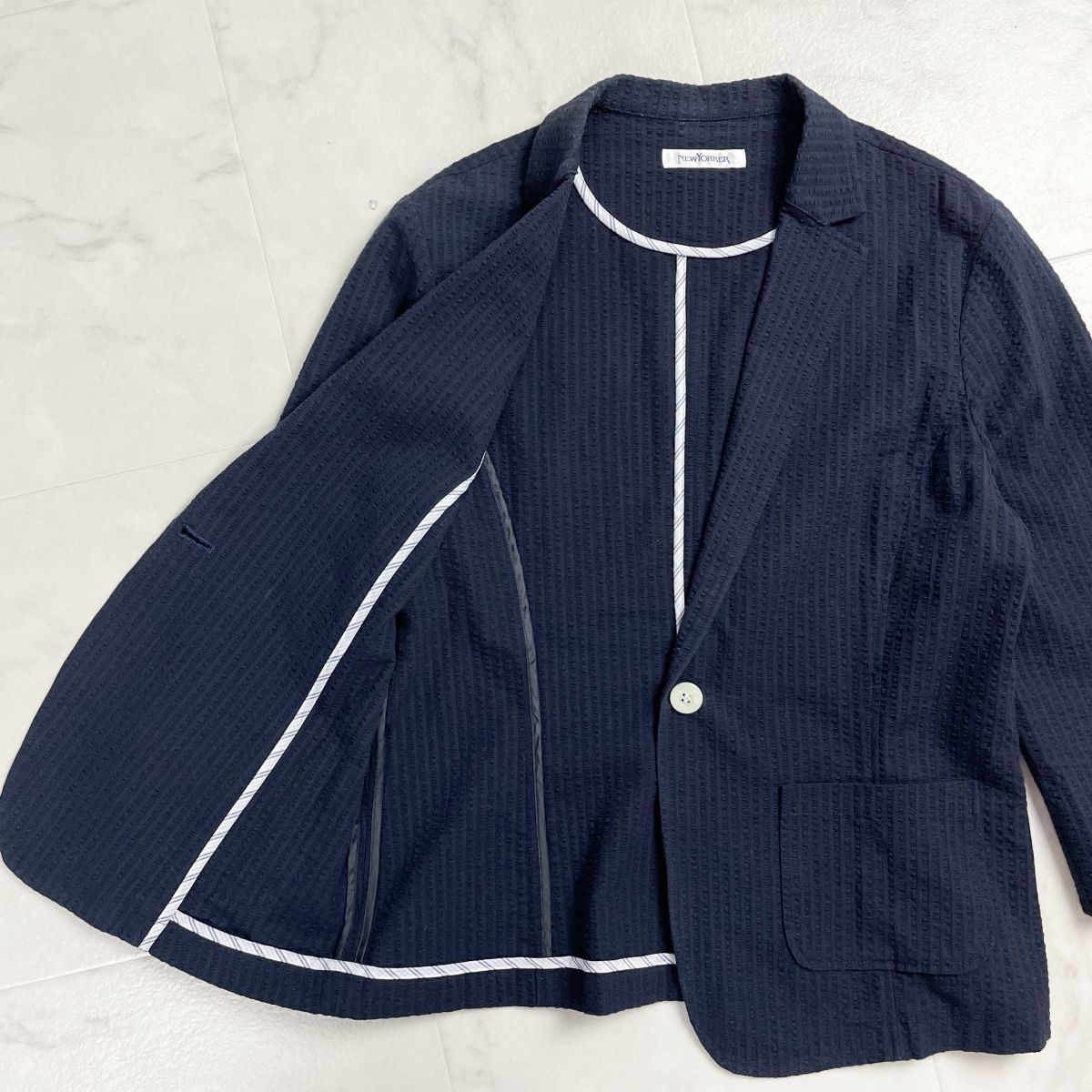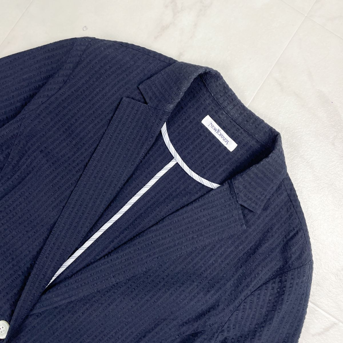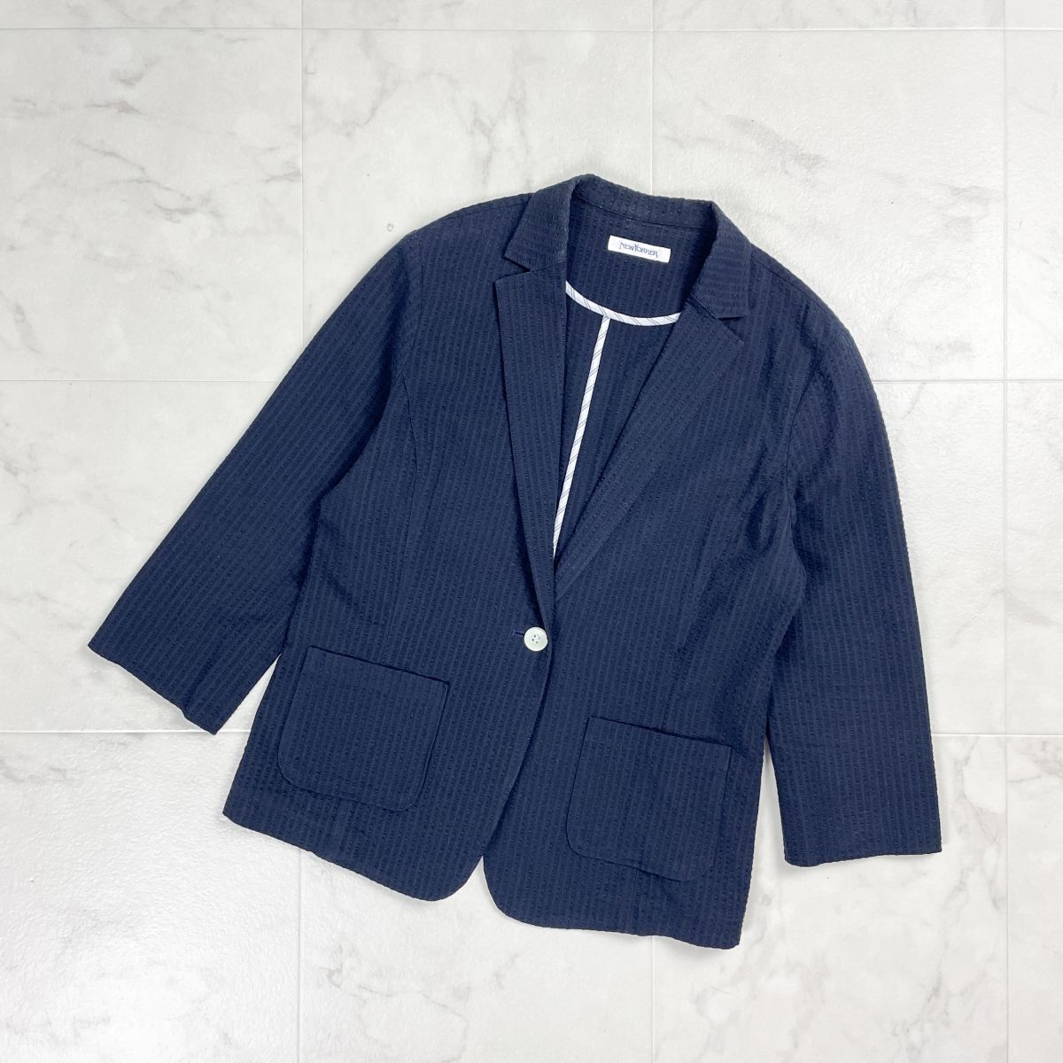 NEWYORKER ニューヨーカー コットンテーラードジャケット 春夏用 七分袖 レディース ネイビー 紺 サイズ11*GD1208