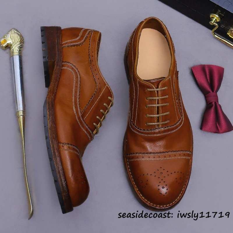超希少★定価13万 ビジネスシューズ メンズ ハンドメイド 革靴 本革 グッドイヤー レザーシューズ 牛革 オックスフォード ブラウン 26.0cm