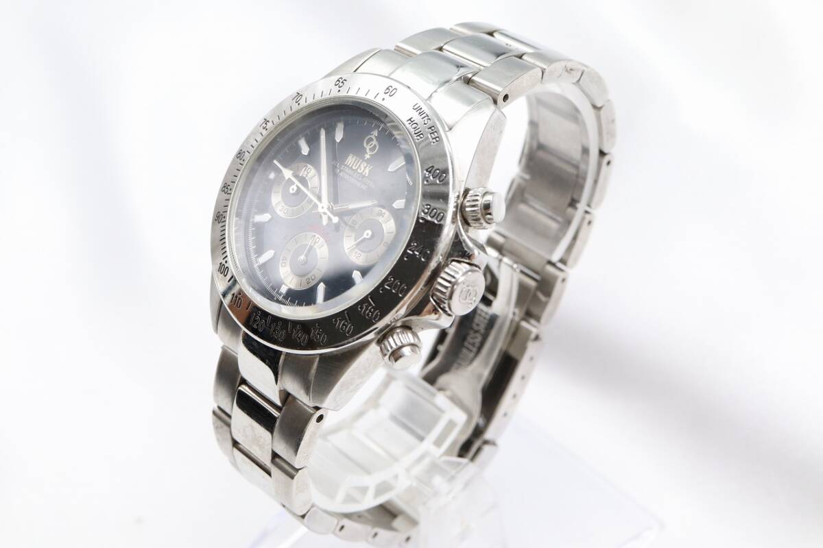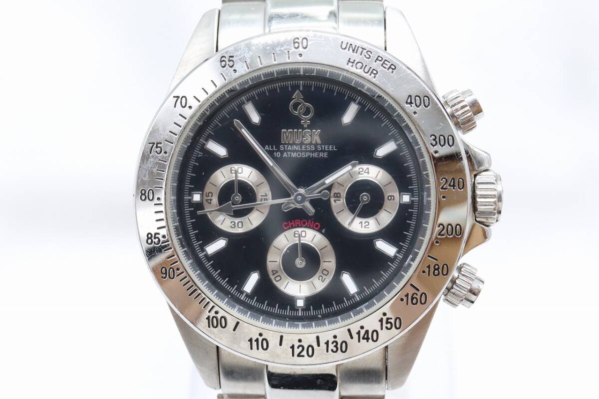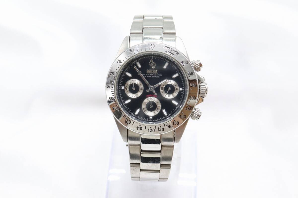 【W257-117】動作品 電池交換済 MUSK ムスク クロノグラフ 腕時計 MM-2142 メンズ【送料全国一律185円】