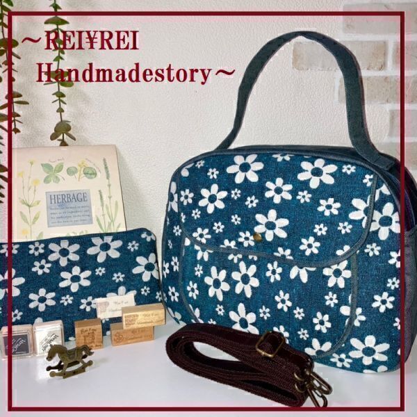 《 れい¥れいのハンドメイド生活 》 ◇ご覧いただきありがとうございます◇ ☆ボストン型トート&ポーチ☆3WAY☆ショルダー紐付き☆ゴブラン織り 《トートバッグ》  北欧花柄のゴブラン織り生地と ヴィンテージデニム生地との組み合わせ 取り外しショルダー紐付きの 3WAYボストン型トートバッグです 底板付きでしっかりとした作りです 横(マチ分含まず)31㎝ たて中央25㎝ マチ底12㎝ 外ポケット3個  内ポケット3個 Dカン付き 両開きファスナー明き 底板付き  バッグ本体の重さ約420g(底板・ショルダー紐含む) ★斜め掛けショルダー紐付き   《ポーチ》 横22㎝ たて14㎝ マチなし  ファスナー明き19㎝ 鍵用ナスカン付き ポーチの重さ約50g 《 素材 》  ☆表柄地 ポリエステル70%・その他(ゴブラン織り)  ☆表無地 綿100%(ヴィンテージデニム) (ゴブラン織り特有のネップ・織り糸がある場合がございます事予めご了承下さい) ☆内布 綿100% 《 お支払い方法 》