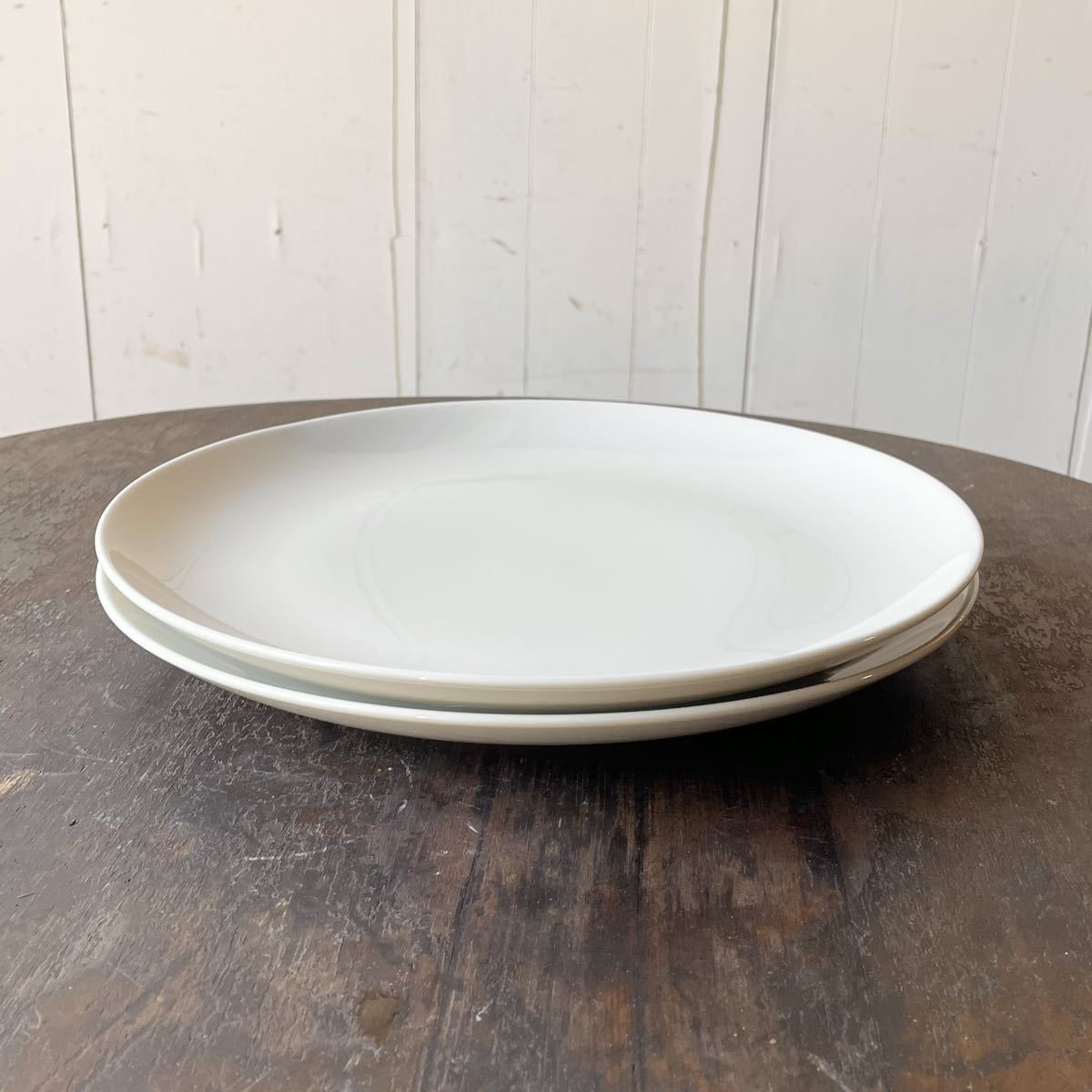 クリーム色のシンプルな大きめ皿2枚セットの出品