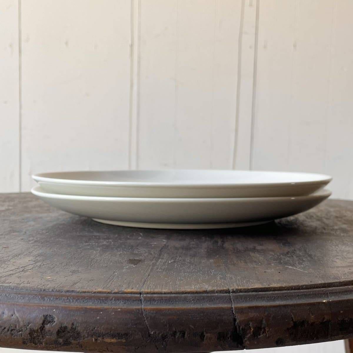 2枚set 大きなクリーム色 シンプルなプレート デッドストック 陶器 検: ワンプレート モーニング レトロ ビンテージ アンティーク 皿 大皿