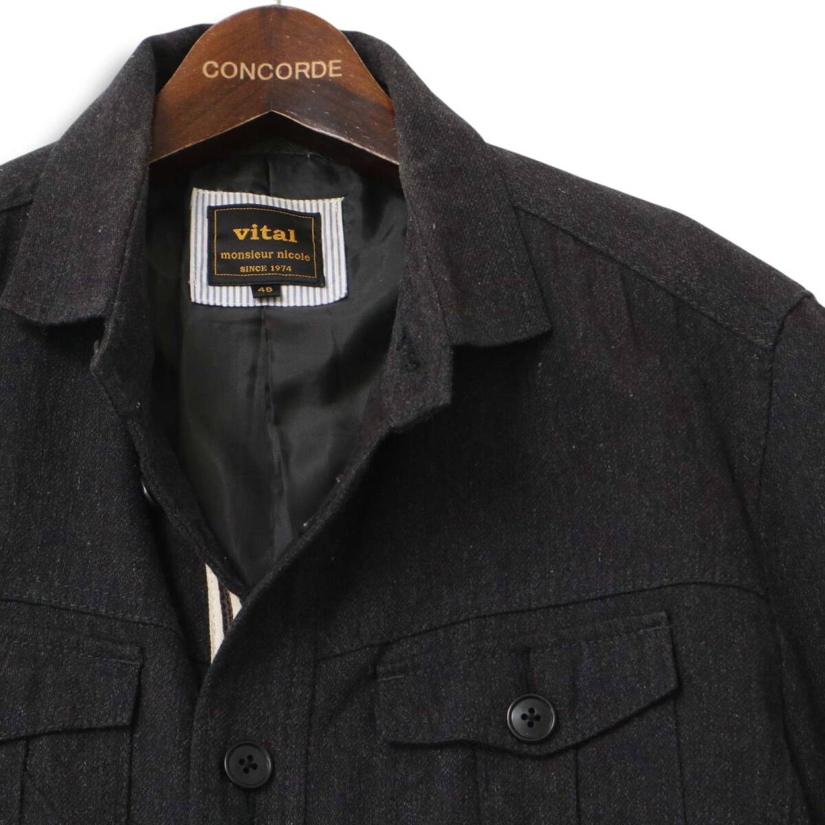 vital MONSIEUR NICOLE ムッシュ ニコル 秋冬 ウール★ 長袖 ワーク シャツ ジャケット Sz.48 メンズ グレー