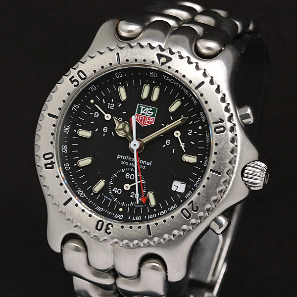 1円 稼働 タグホイヤー プロフェッショナル CG-1110-0 QZ ブラック文字盤 メンズ腕時計 0015400 9BKT