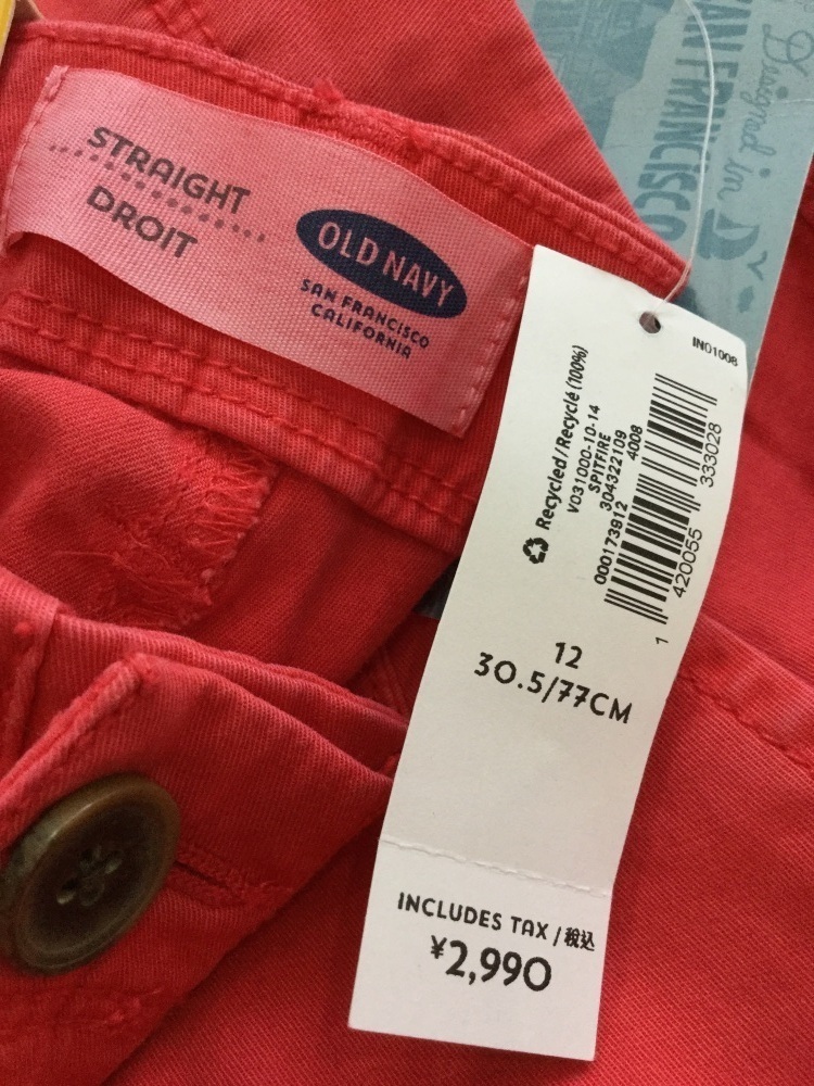 | 管理番号:10^119468 オールドネイビー ゆったりサイズ オレンジピンク ストレッチパンツ 表示サイズ:12 実寸(参考)