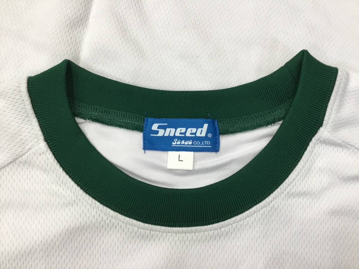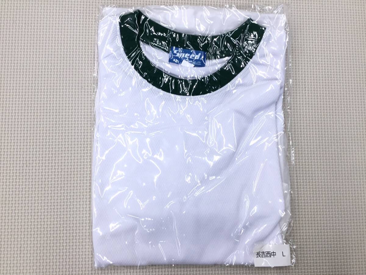 S1496 新品【長吉西中学校】(旧)スクールスポーツウェア サイズ L/SneedSanwa/半袖/ラグラン/丸衿/白x緑/男女兼用/中学生/学生