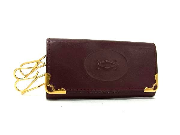 Cartier カルティエ マストライン レザー 4連 キーケース 鍵入れ レディース メンズ ボルドー系 DJ7350