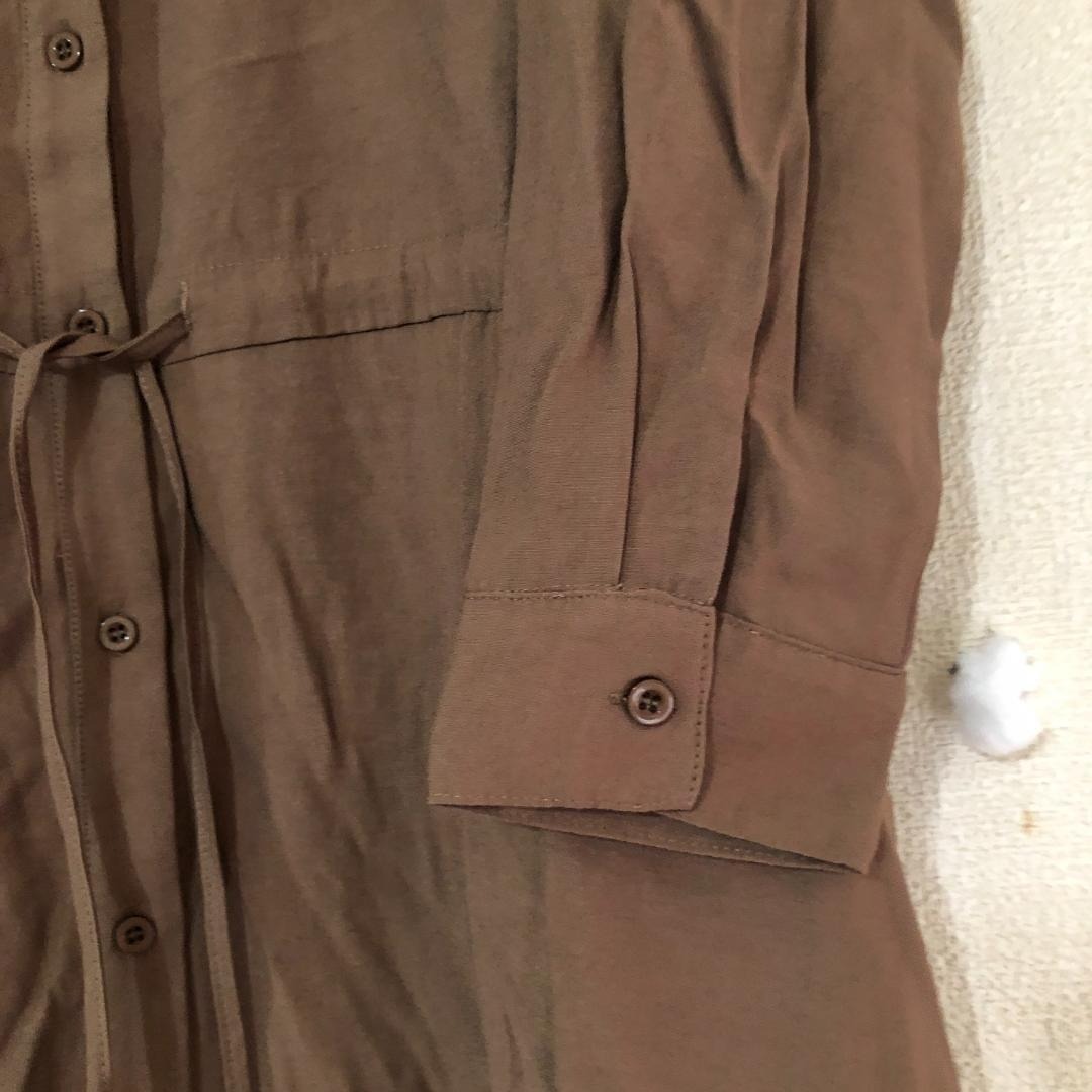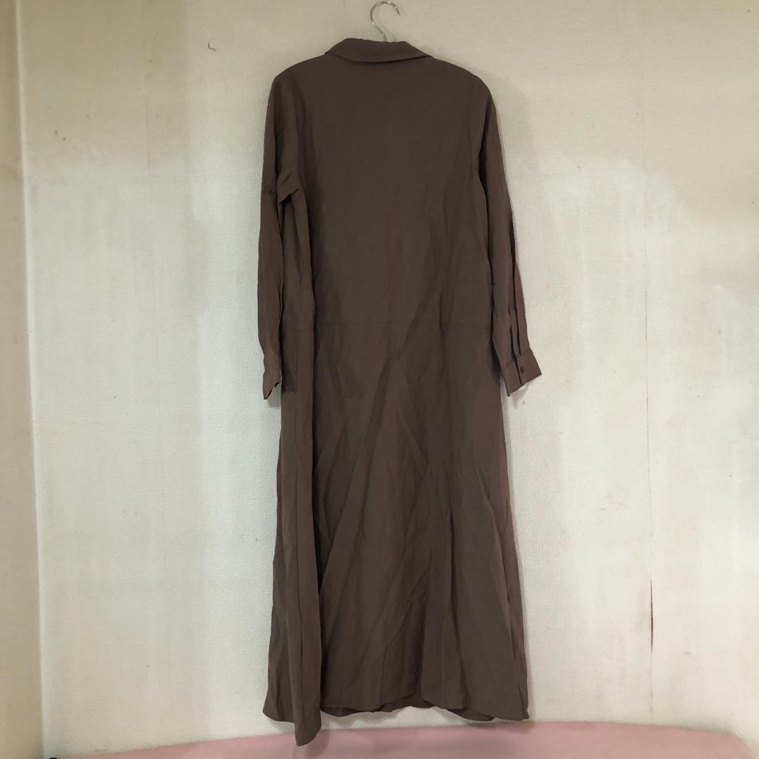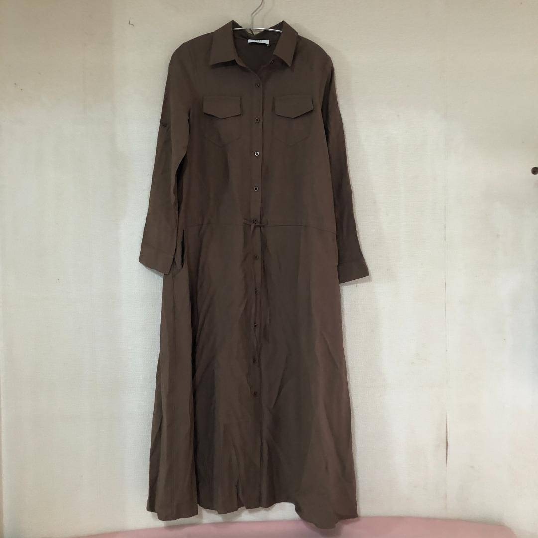ポケットデザインがおしゃれな、ブラウンのロングシャツワンピースです。