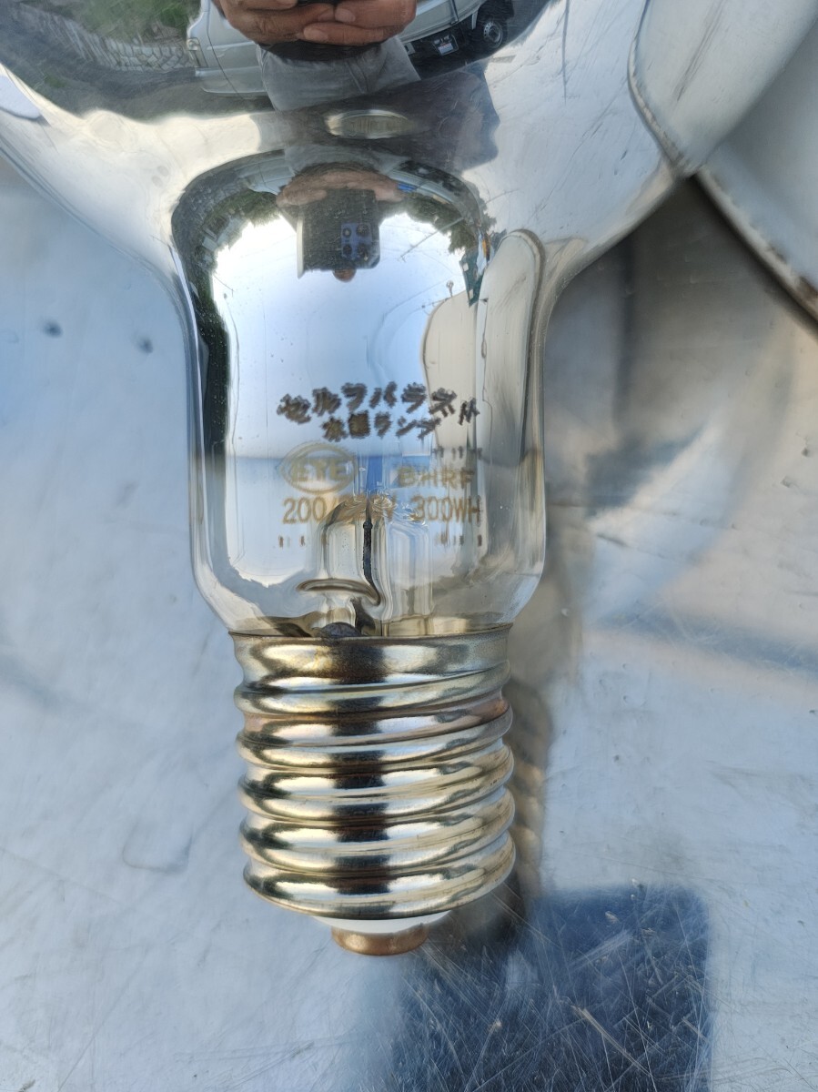 中古 水銀灯 点灯確認済み 安定器なしで直接つなぐタイプ 動力 200V 300W か白 外寸:約41×41×30cm ランプサイズ:約18×18×26cm