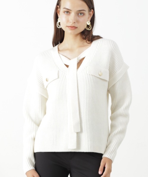 参考商品名:◆片畦ボウタイミドルゲージニットプルオーバー