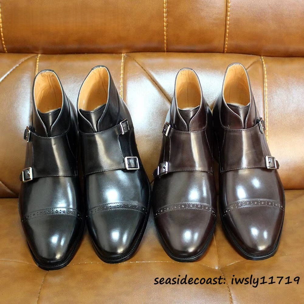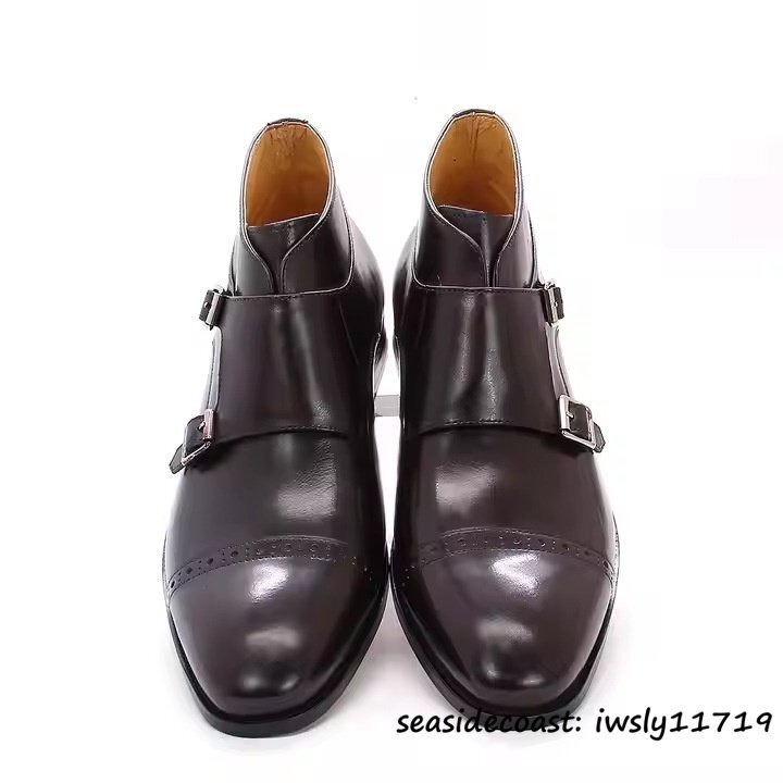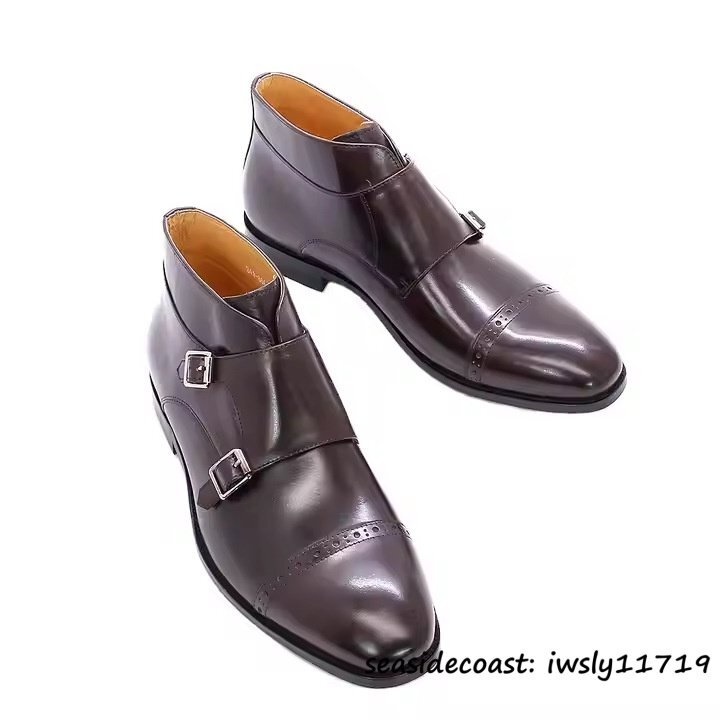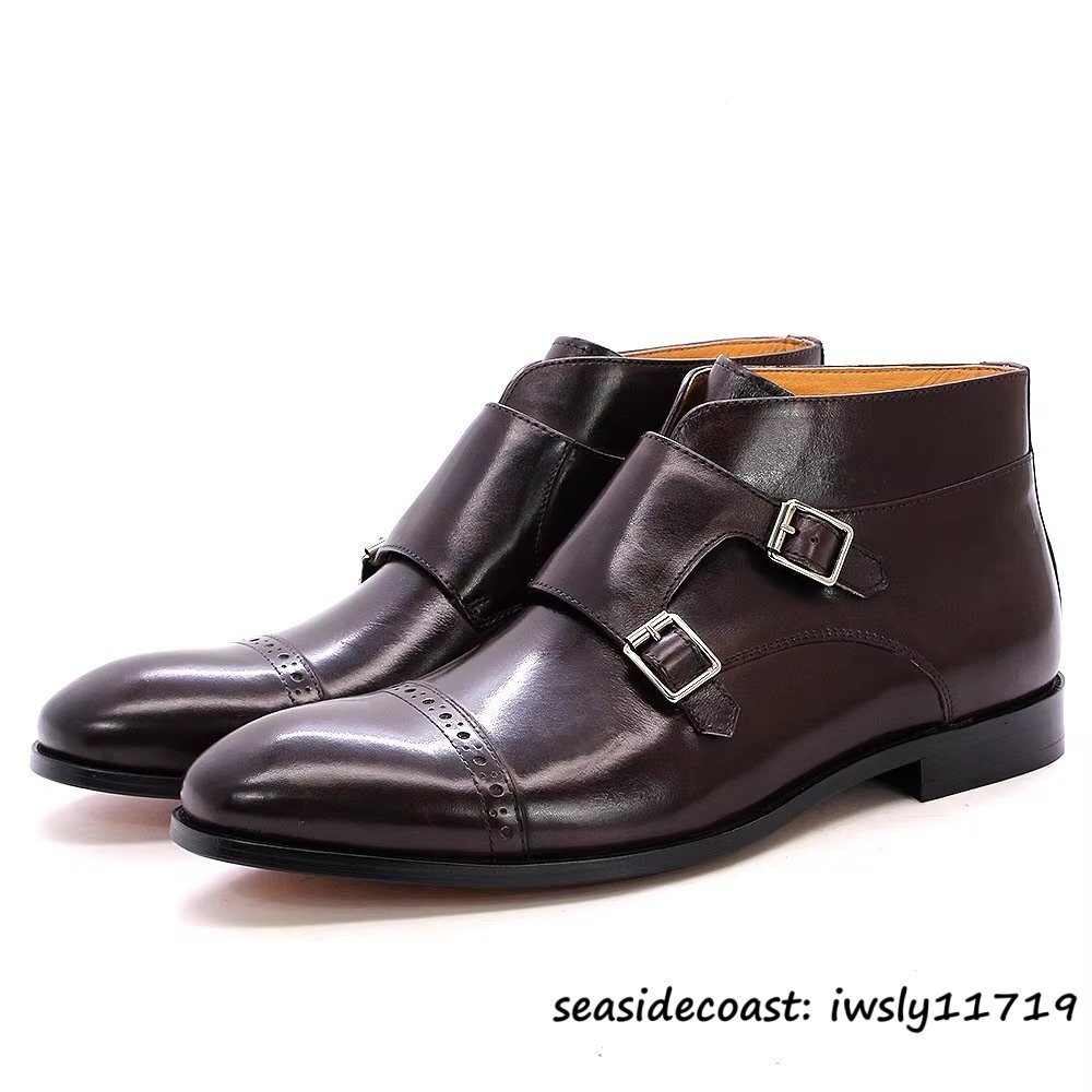 定価13万*新品 レザーブーツ シークレット メンズ 本革 職人手作り ショートブーツ エンジニアブーツ ハイカット 牛革革靴 珈琲色 26.5cm