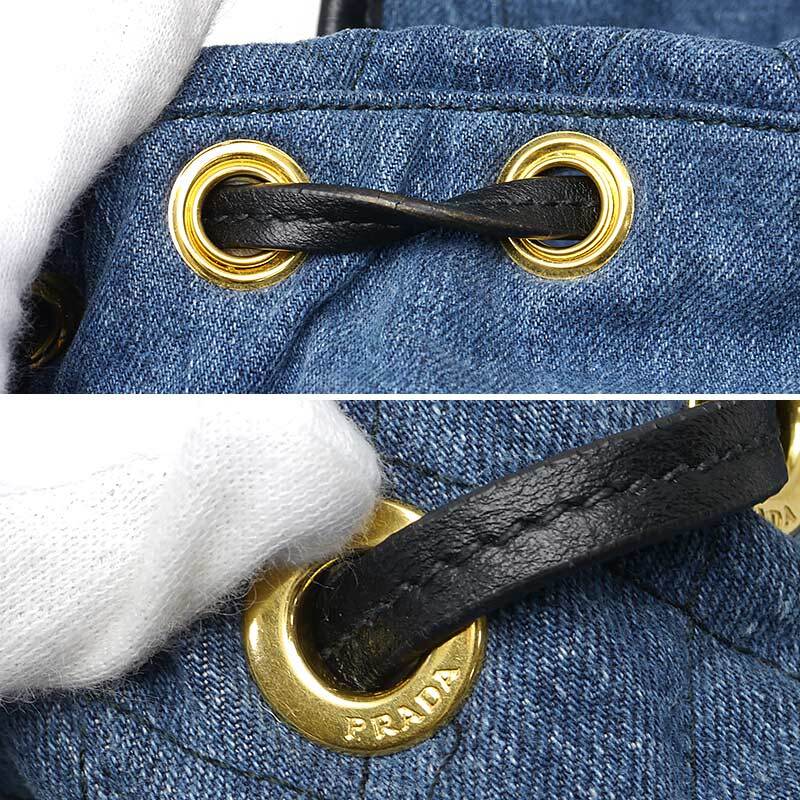 【外側】角の僅かなスレ、刺繍に僅かなホツレ箇所、レザー製のベルトや紐部分に多少のスレやコバの割れあり