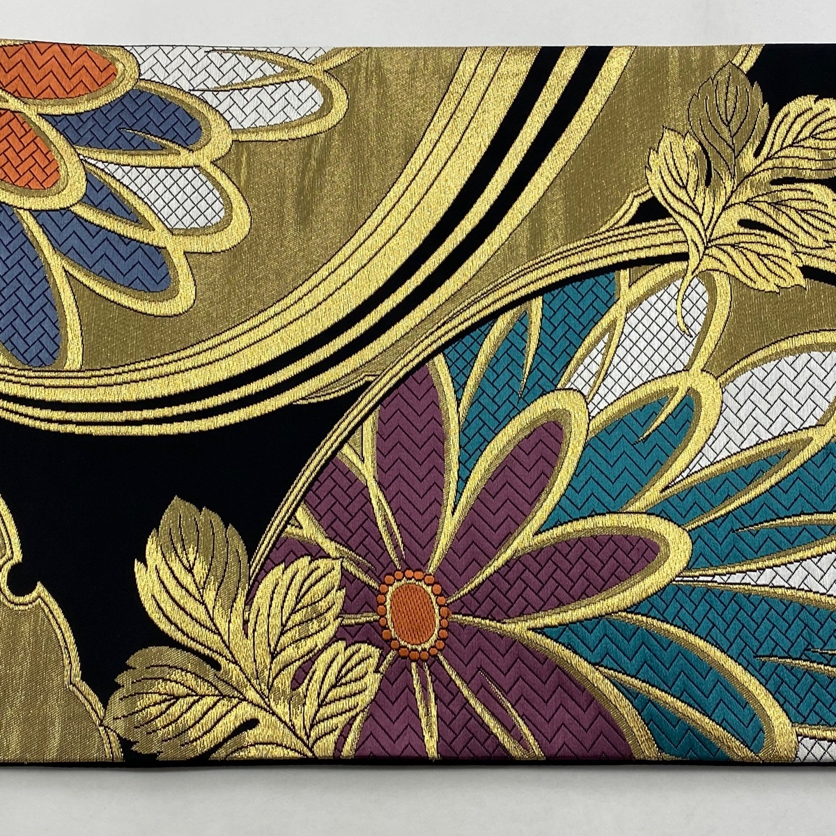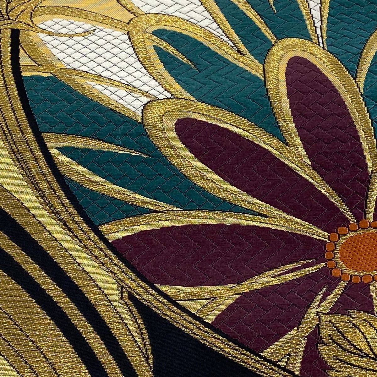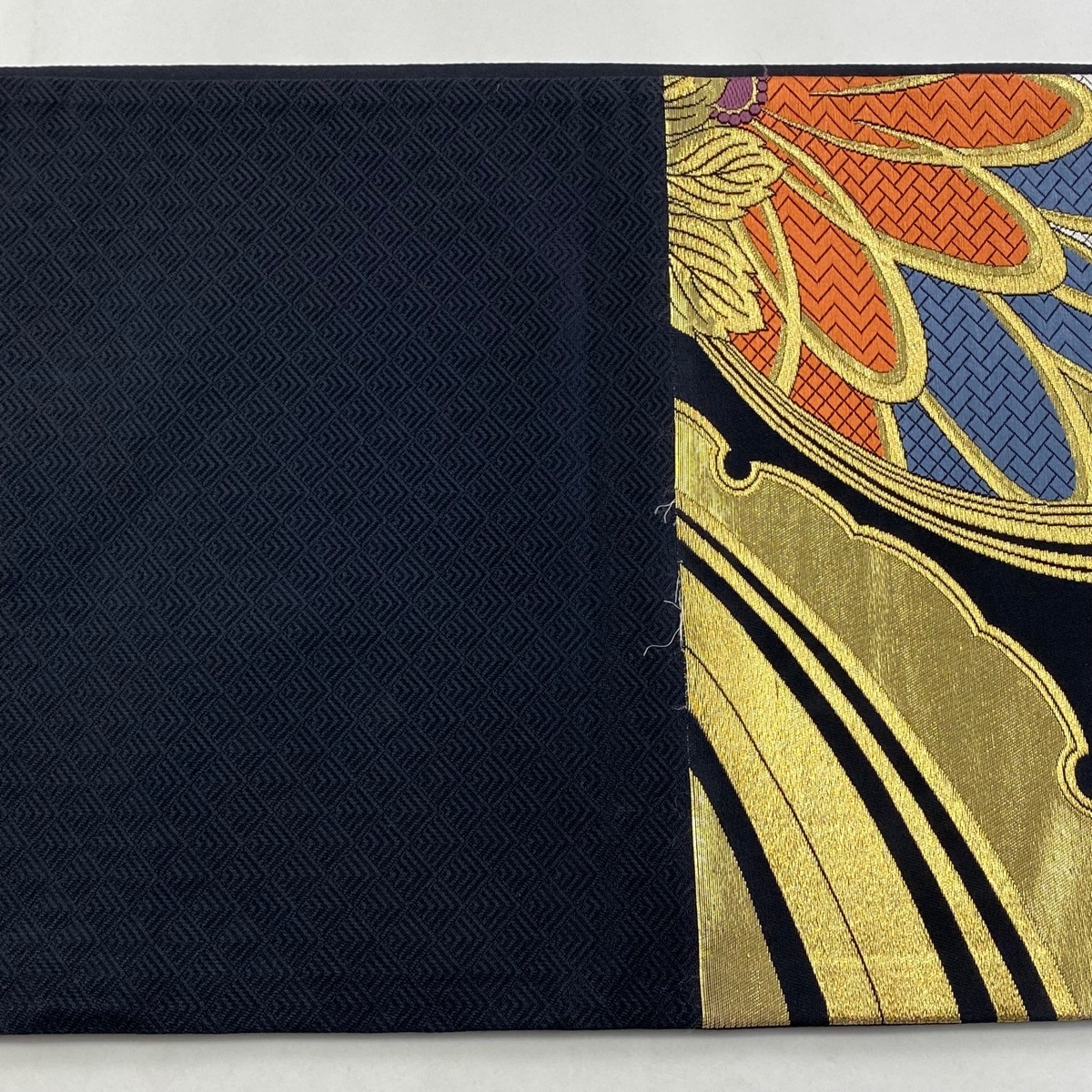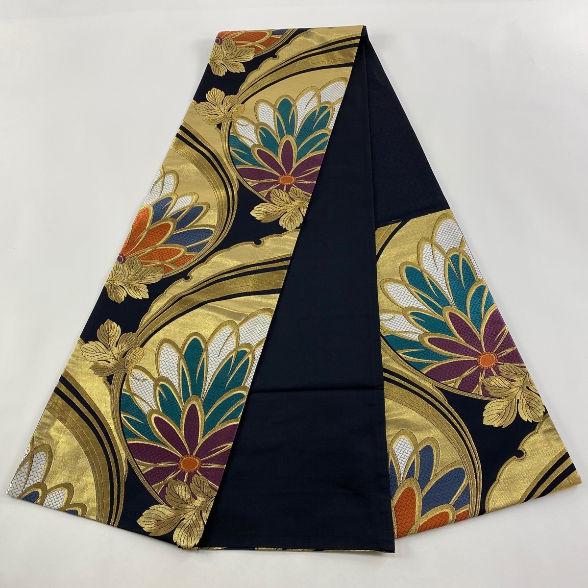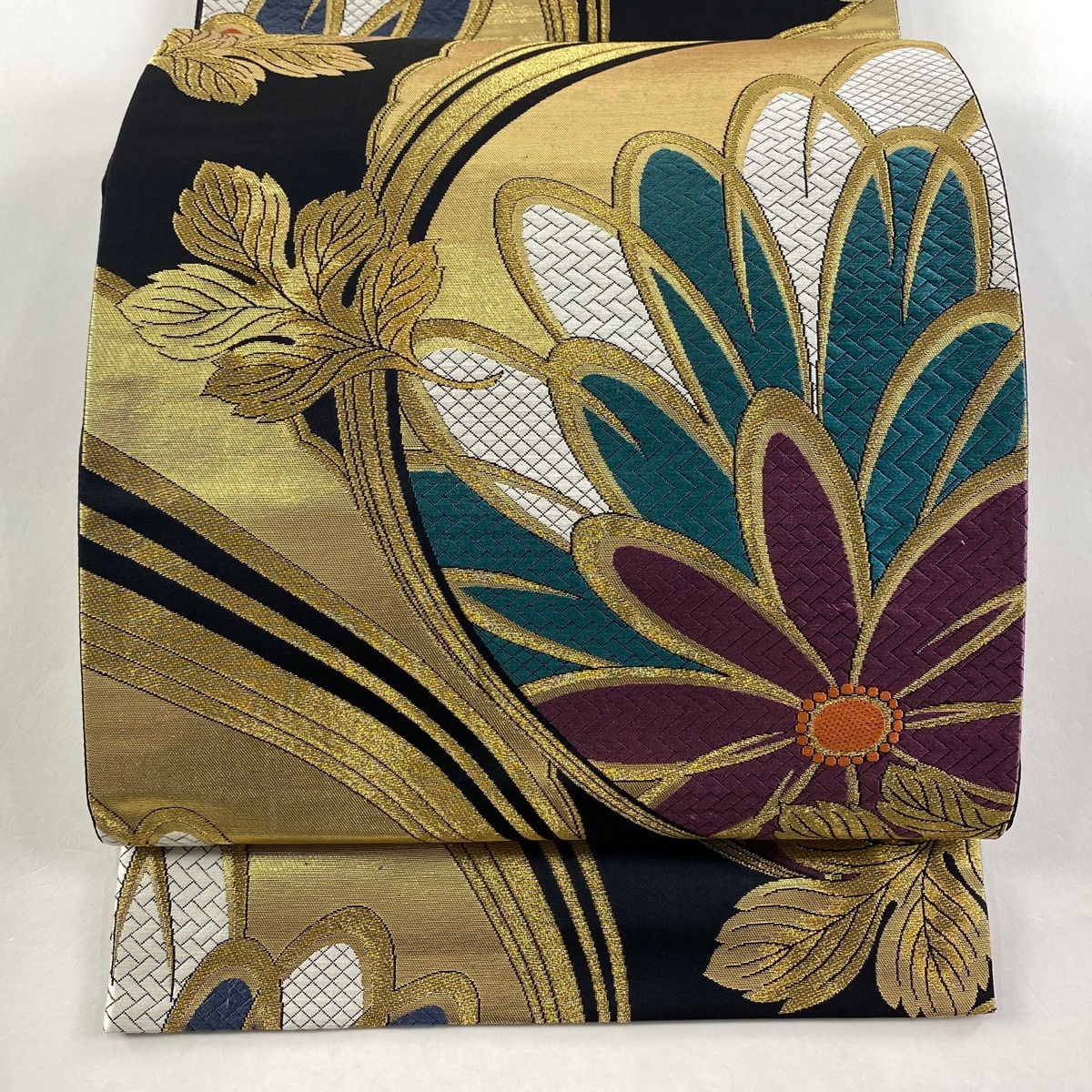 | 袋帯 美品 秀品 菊 雪輪 金糸 箔 黒 六通 正絹 【中古】 |