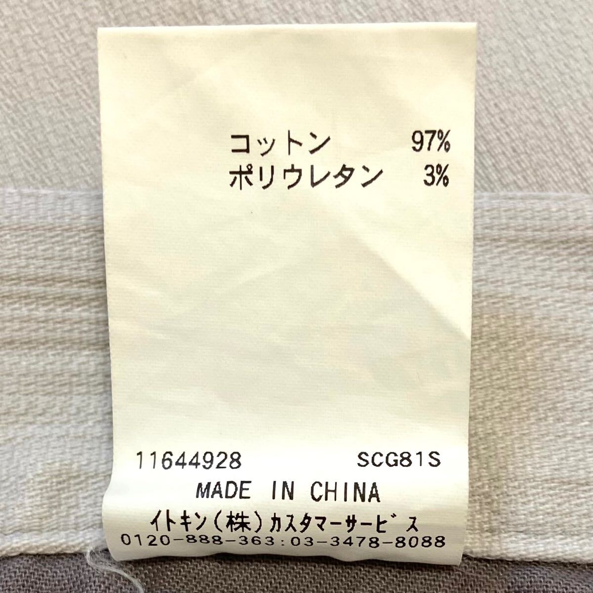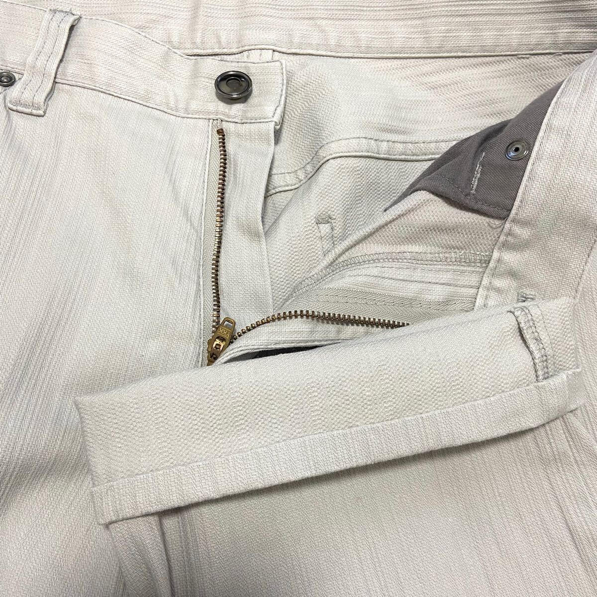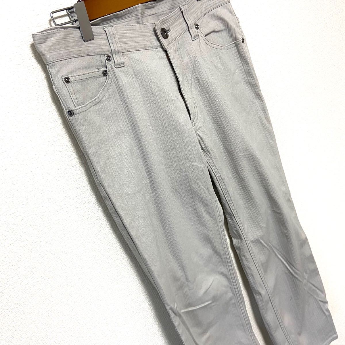 カジュアルやキレイめにも活躍するアイテムです。ストレッチあり、ストレスなく着用可能です。裾上げしてあり、右すねによごれ見られます。