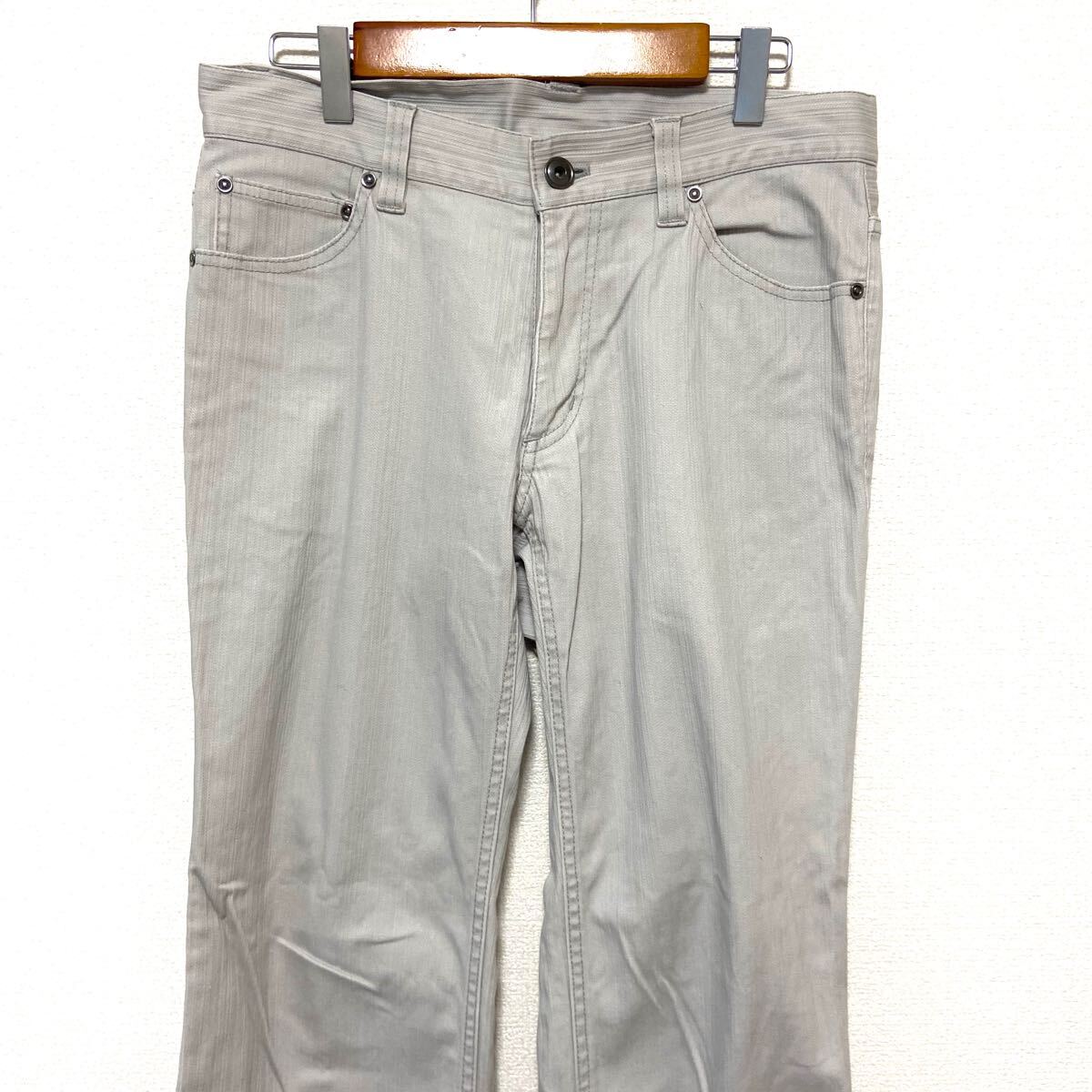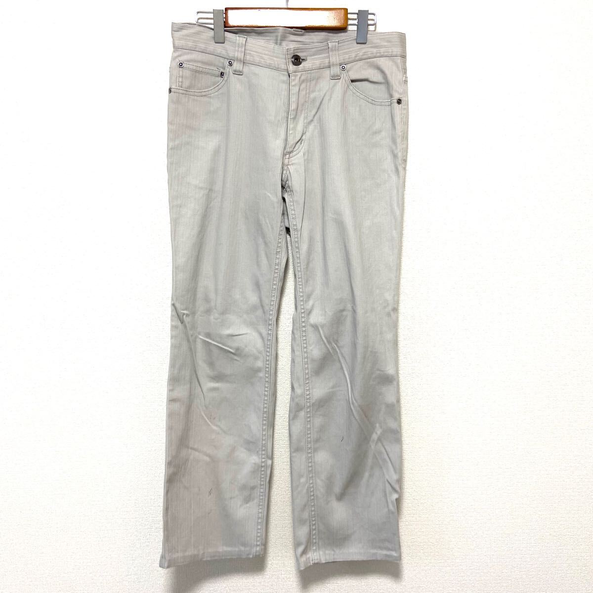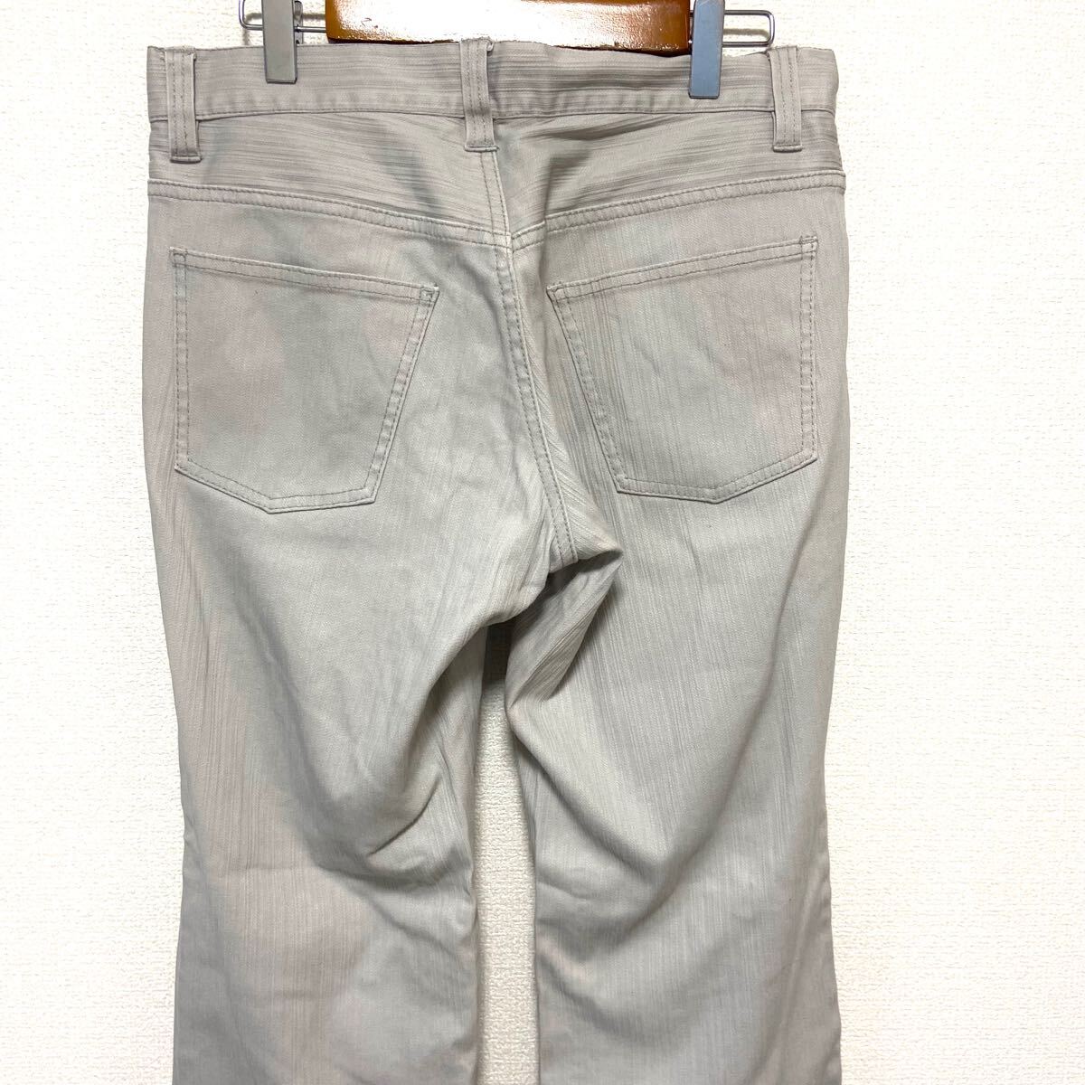 カジュアルやキレイめにも活躍するアイテムです。ストレッチあり、ストレスなく着用可能です。裾上げしてあり、右すねによごれ見られます。