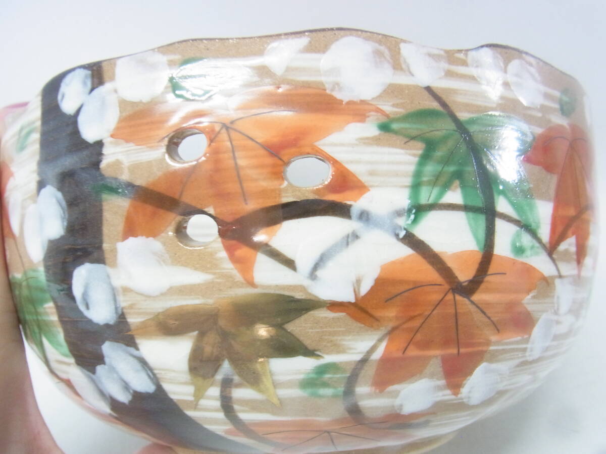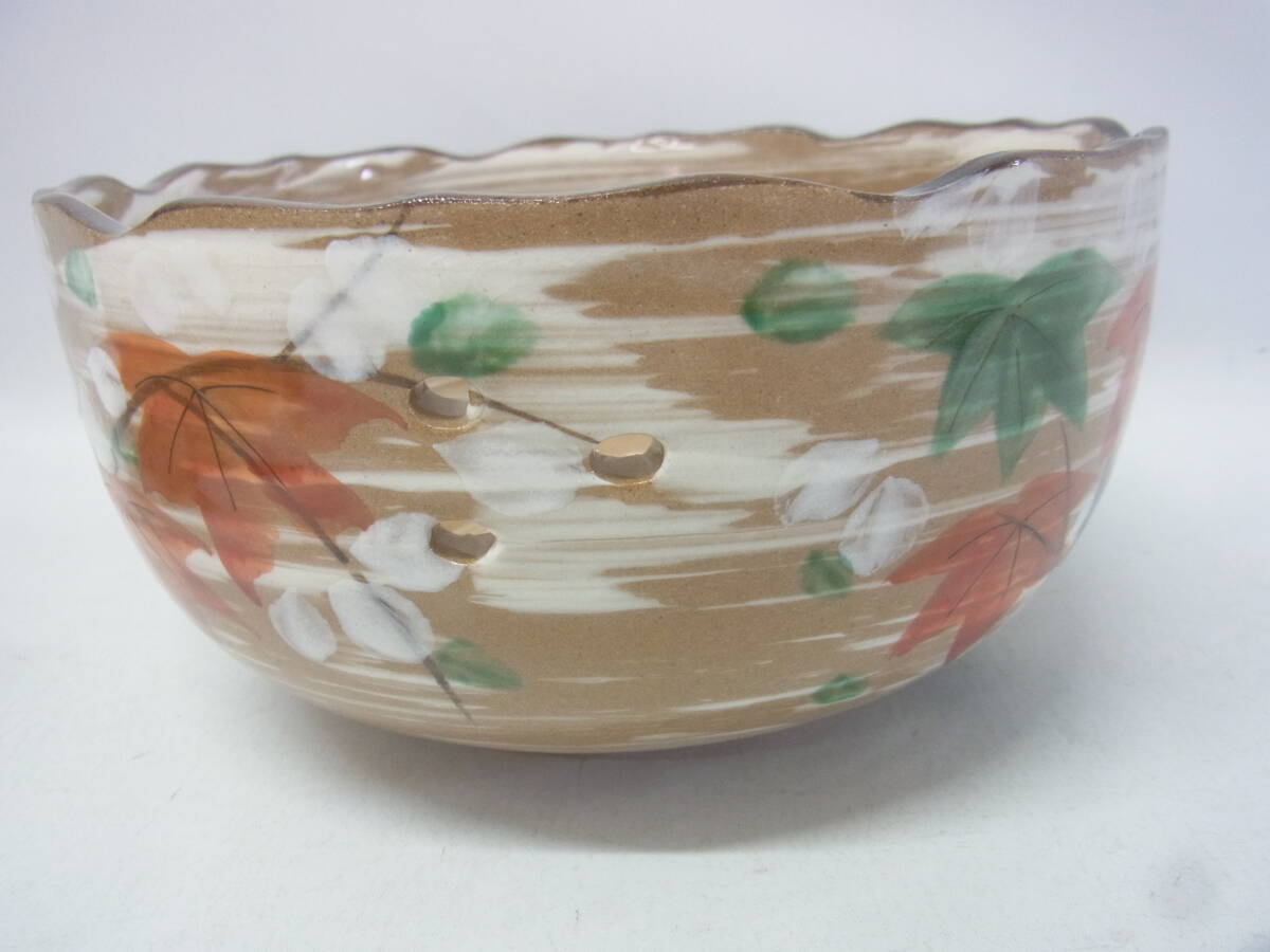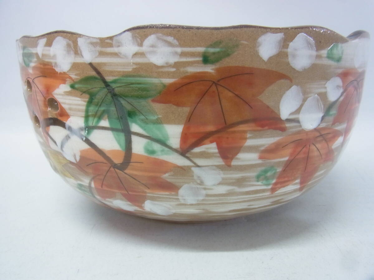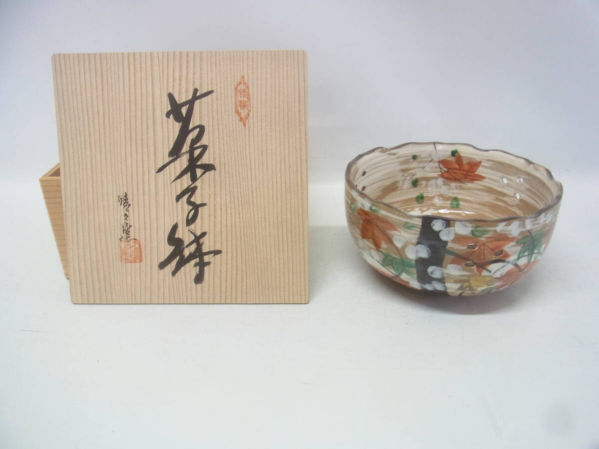 ▲菓子鉢 透かし 晴々窯 美濃焼 菓子器 紅葉 もみじ絵 共箱 木箱 日本 焼き物 昭和 高さ約9.3cm レトロ 保管品 ▲60 | |||
