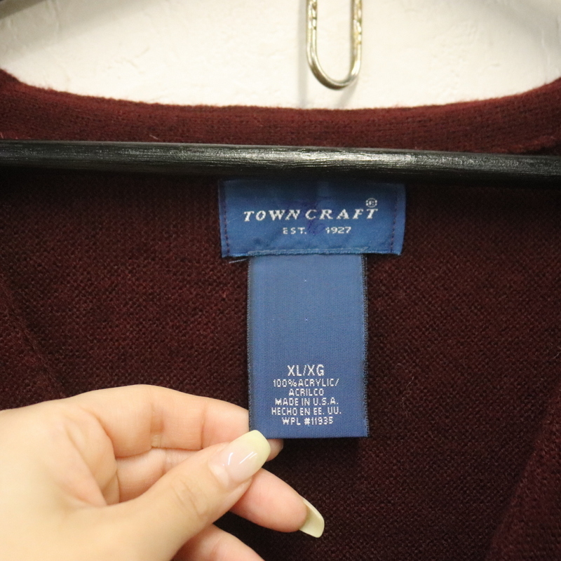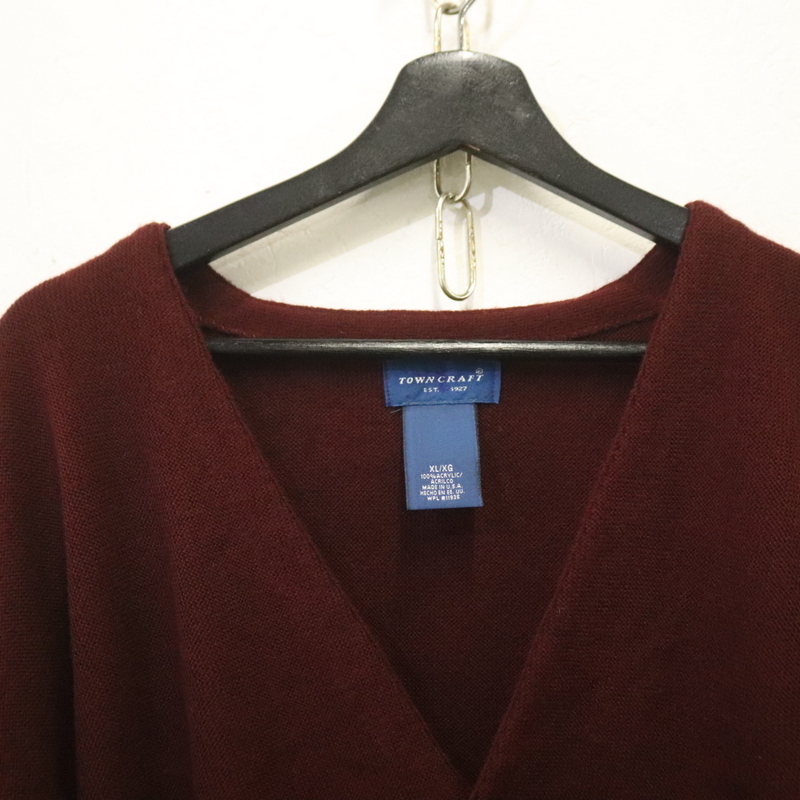 商品名 E881 90sビンテージ タウンクラフト アクリルニットカーディガン USA製■1990年代製 表記XLサイズ ボルドー 無地 アメカジ ストリート 80s