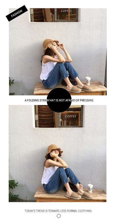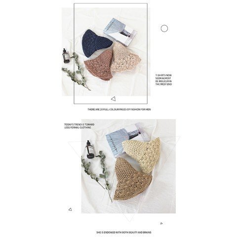 ・デザイン性のあるツバがエレガントな印象の麦わら風帽子。
