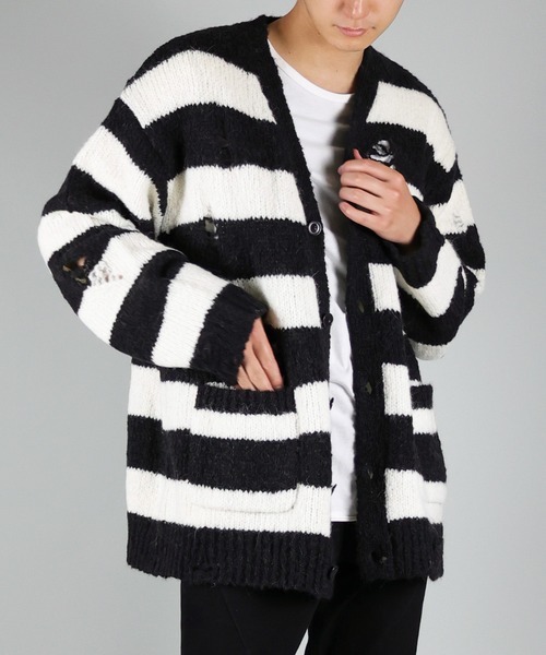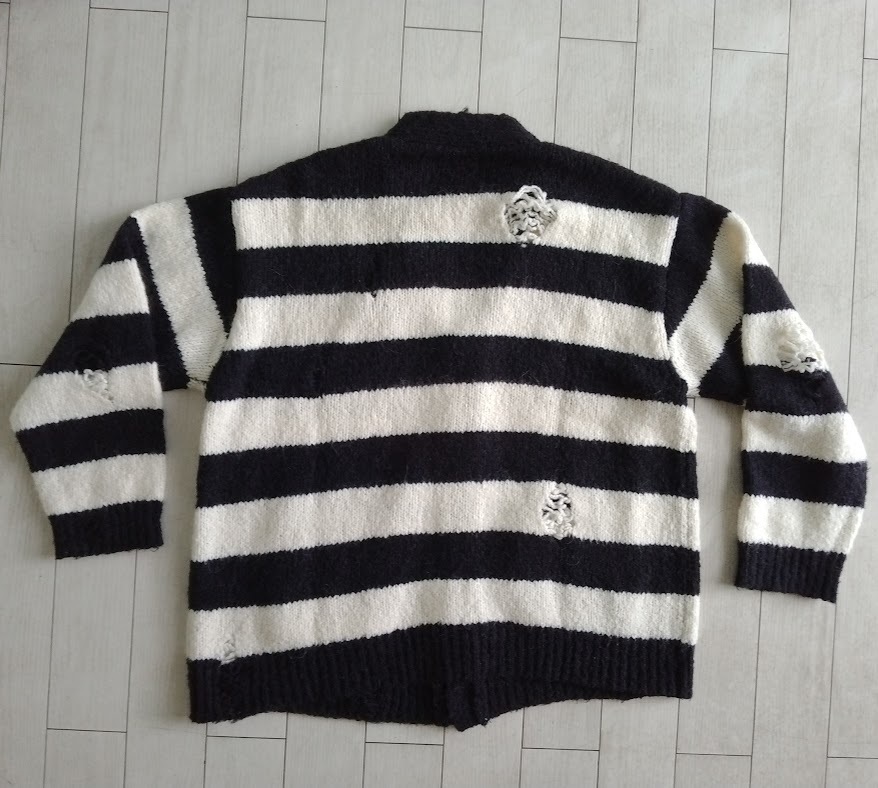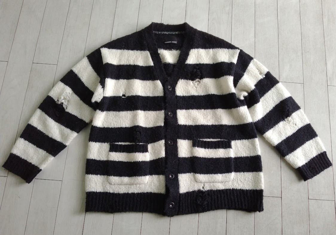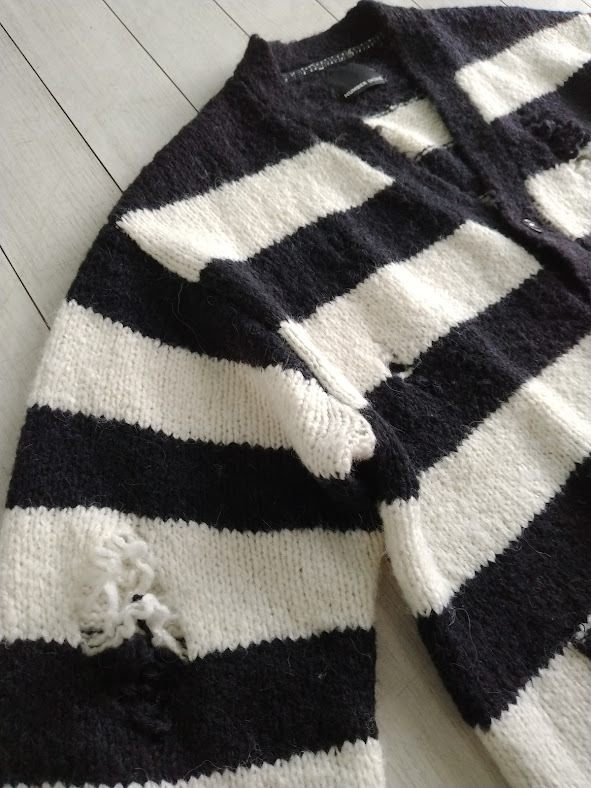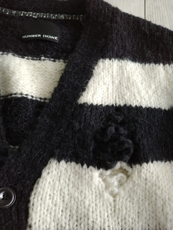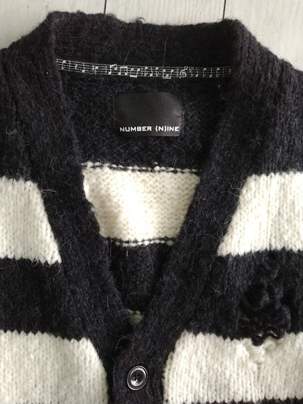 NUMBER (N)INE WOOL ALPACA RIPPED KNIT CARDIGAN / アルパカ ボーダーグランジカーディガン