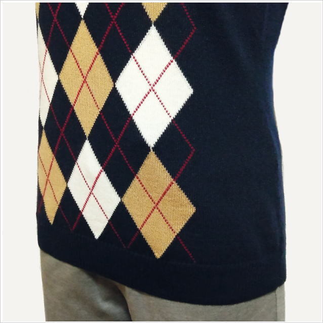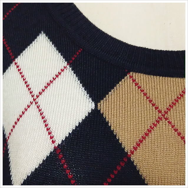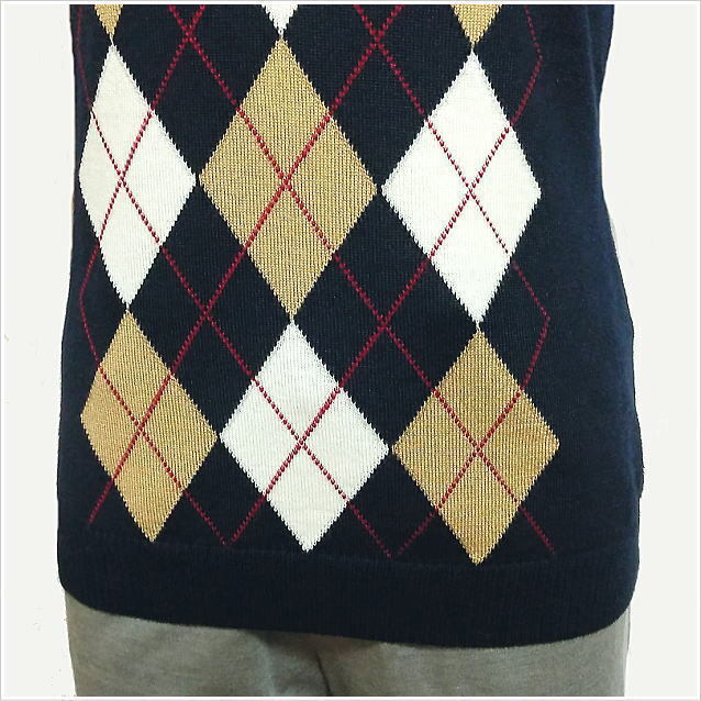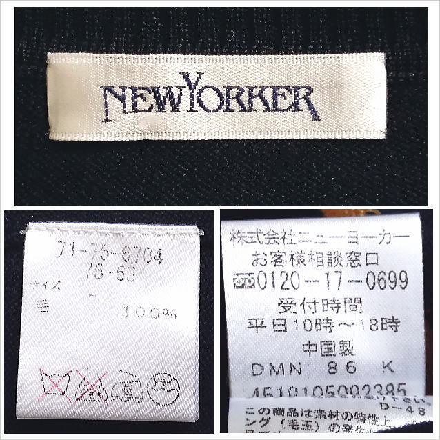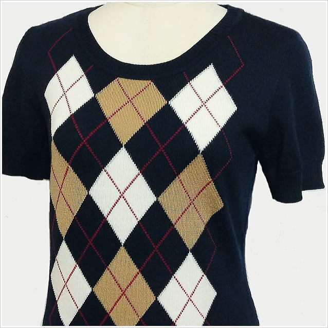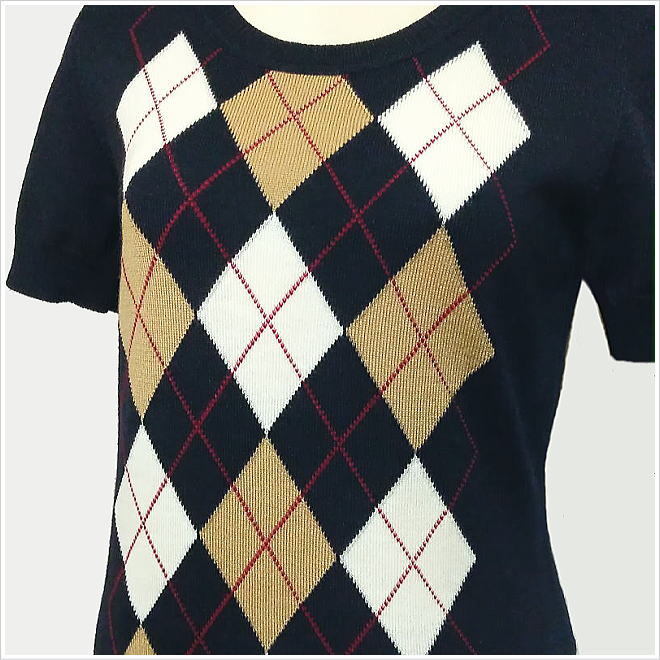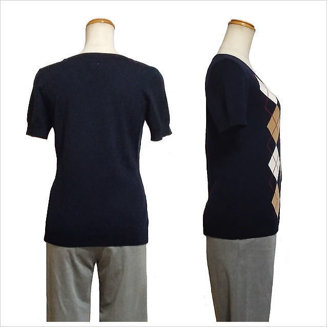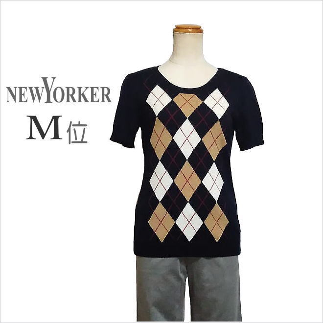 〔NEWYORKER〕濃紺アーガイル柄ウールニット 半袖 ニューヨーカー セーター トップス レディース 上品 M位*送料込み
