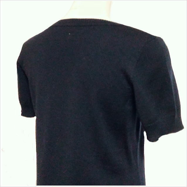 半袖。毛100%のニット生地。横に2~3cm位の伸縮性あり。
