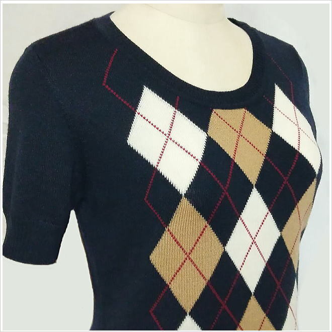 ニット セーター トップス レディース ウール 半袖 上品 アーガイル柄