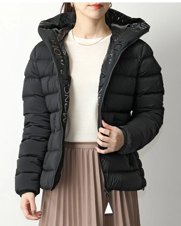 21AW モンクレール ラインロゴ ストレッチナイロン ダウン ジャケット ブラック 国内正規品 レディース  MONCLER #A1