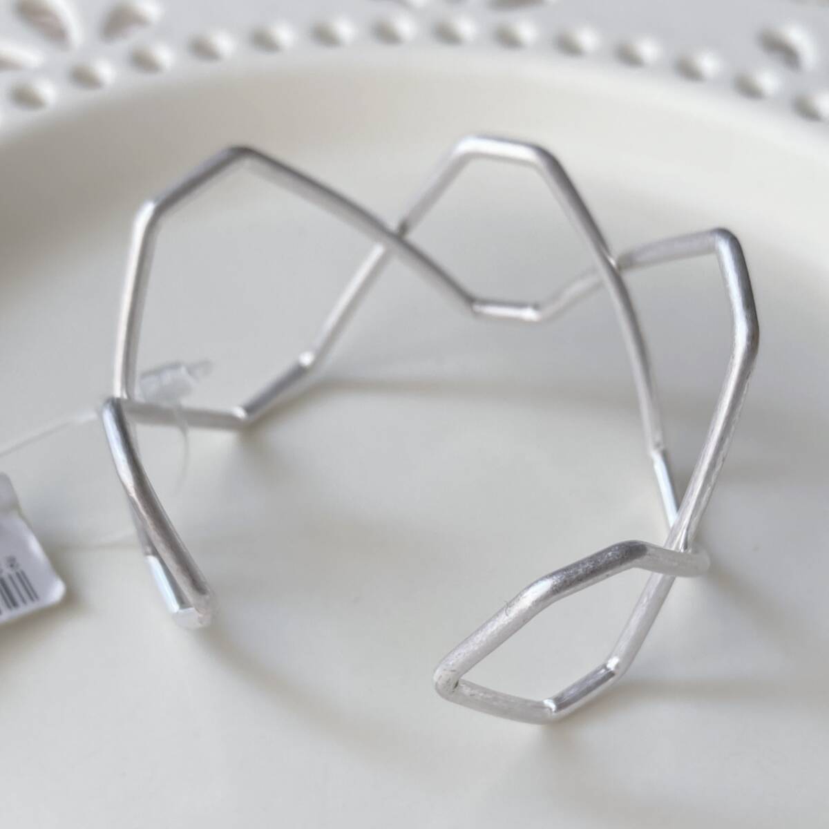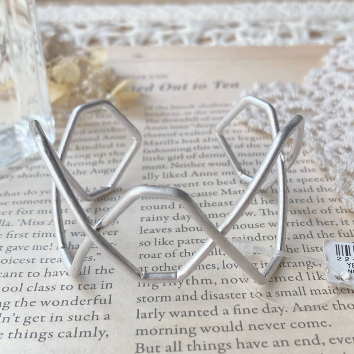 ブレスレット ブラスワイヤーバングル カフ シルバートーン つやけし 未使用☆vintage jewelry accessories F0100
