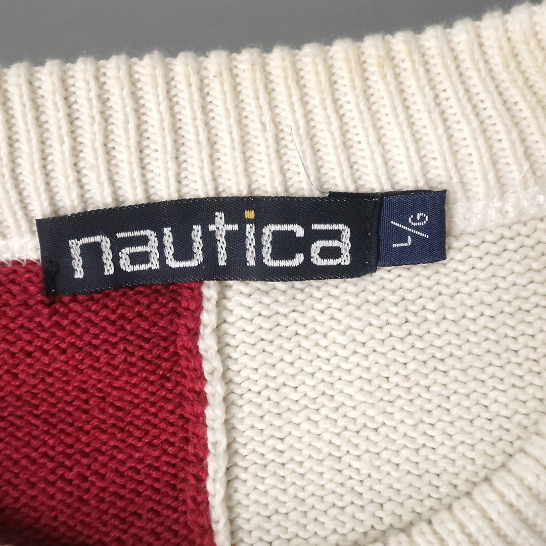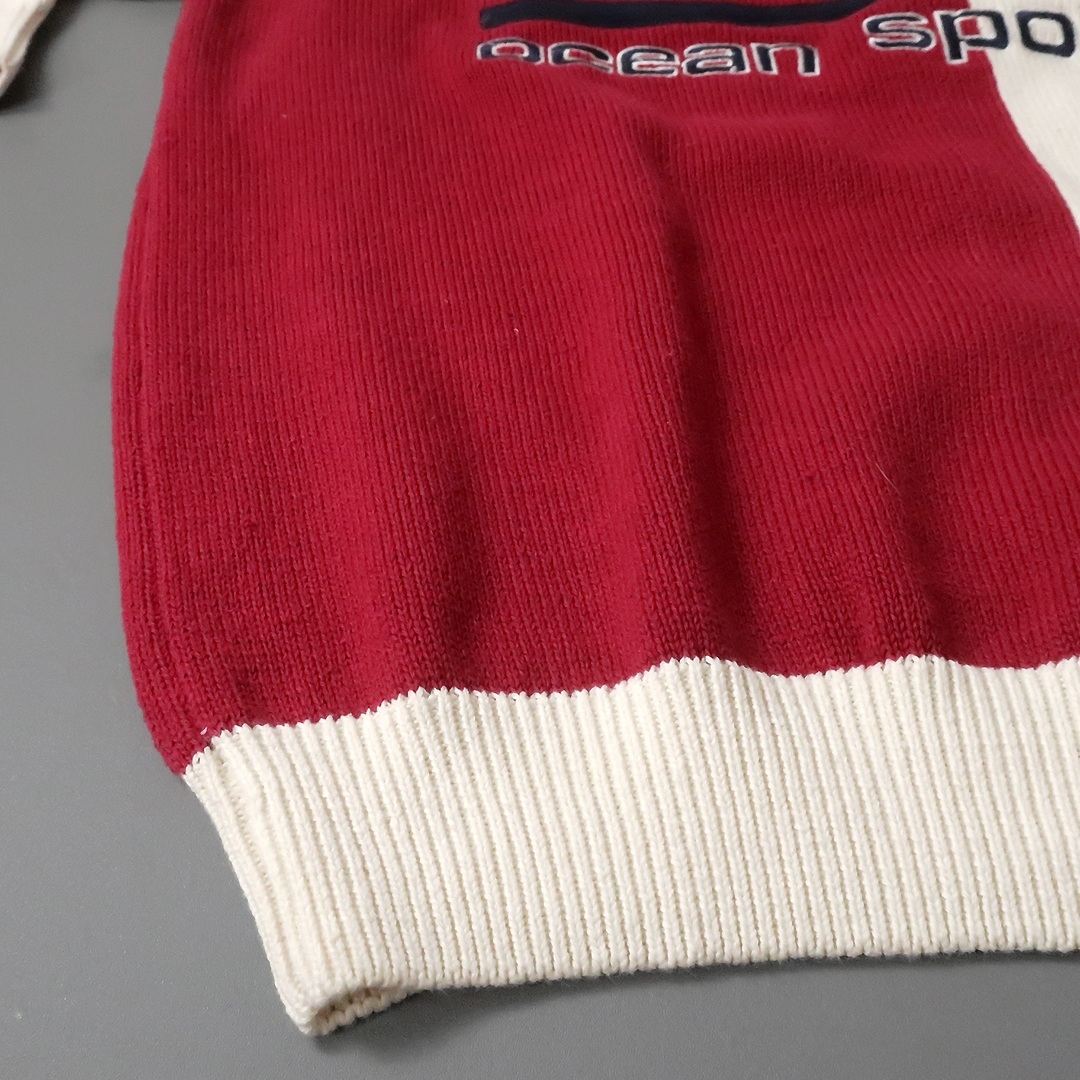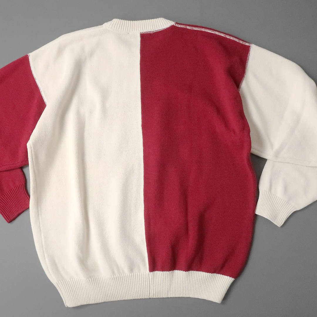 90s nautica ノーティカ 2TONE/ビッグロゴ刺繍 クルーネックセーター 90年代HipHop (Lサイズ)