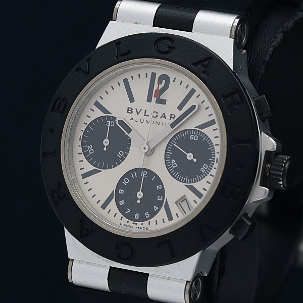1円 稼働 良品 ブルガリ アルミニウム AC38TA アルミニウム AT/自動巻 デイト カーボン文字盤 クロノグラフ メンズ腕時計 0800800 9ANT MST
