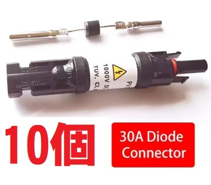 10個セット ソーラーDCダイオードプラグコネクタ 逆流防止ダイオード MC4 30A ソーラーパネル並列接続保護