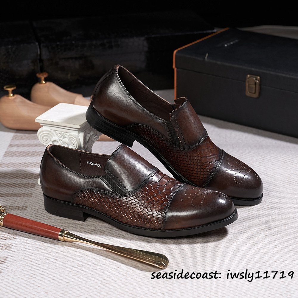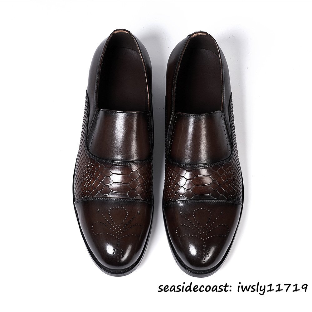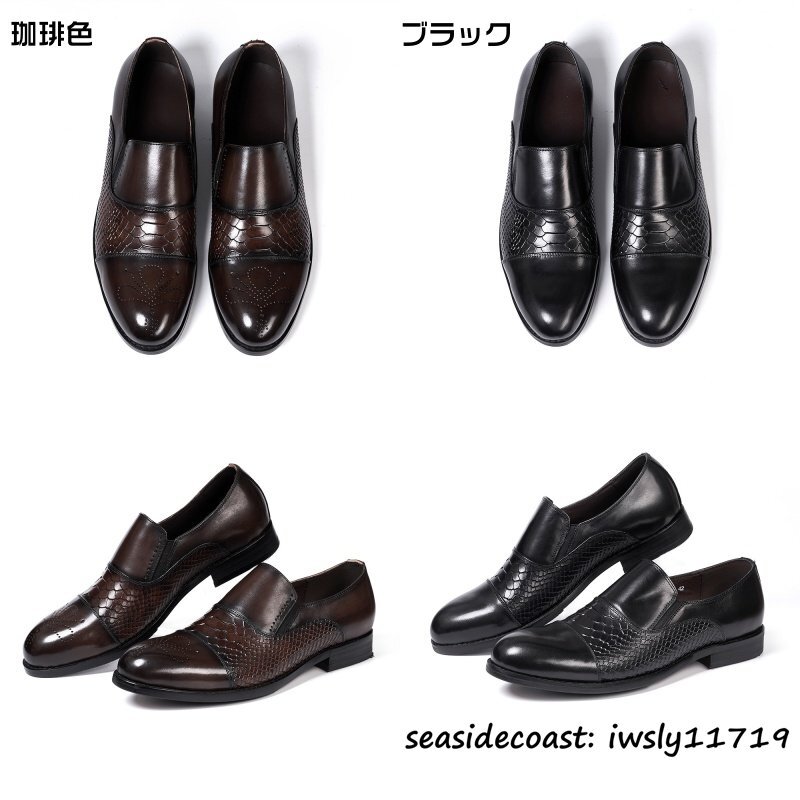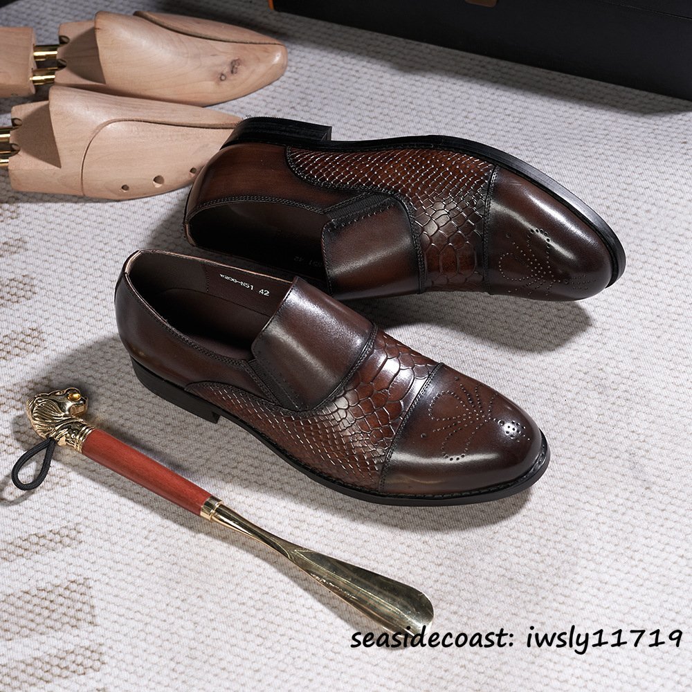 最高級◆ローファー スリッポン 本革 職人手作り 蛇柄 ビジネスシューズ 牛革 紳士靴 レザーシューズ 革靴 通勤 超希少 珈琲色 24.5cm