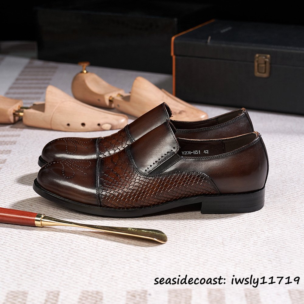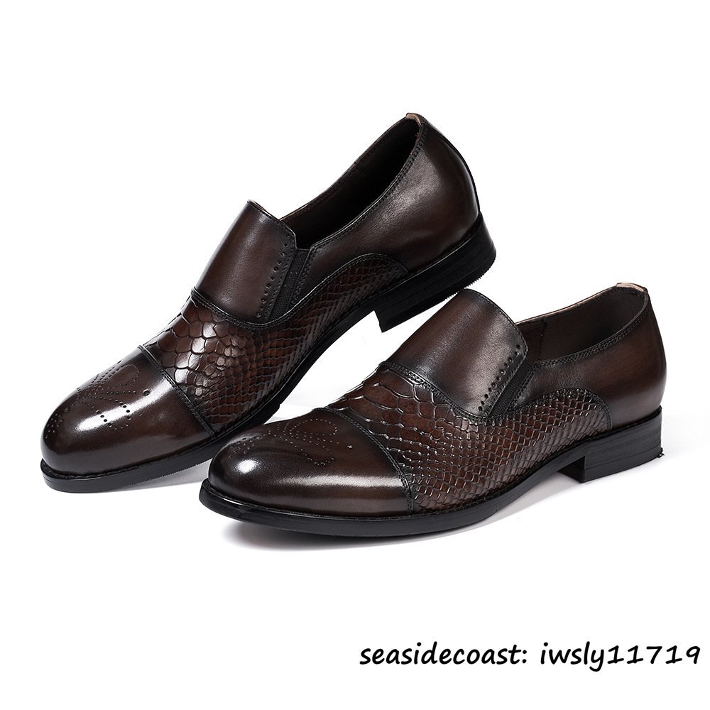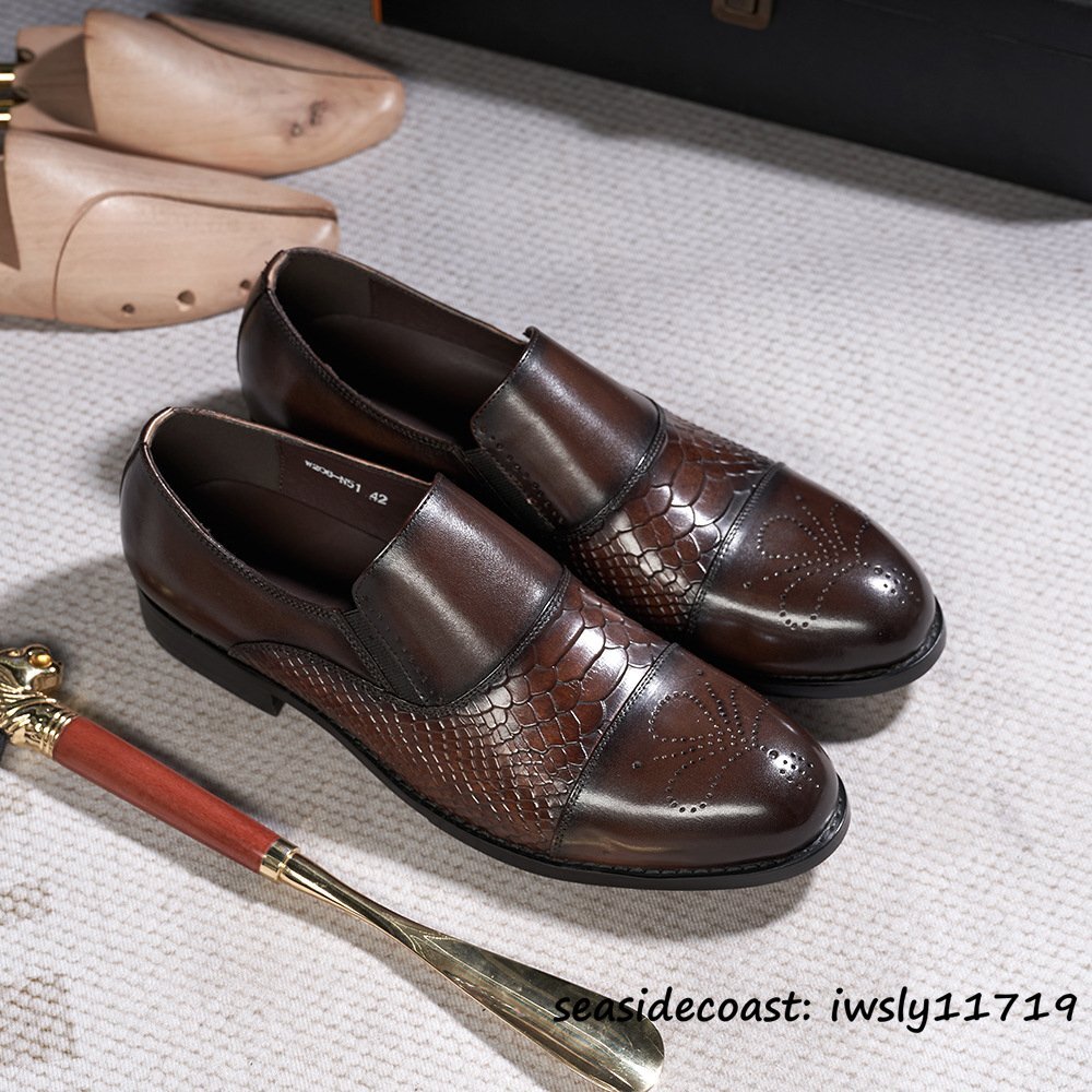 最高級◆ローファー スリッポン 本革 職人手作り 蛇柄 ビジネスシューズ 牛革 紳士靴 レザーシューズ 革靴 通勤 超希少 珈琲色 24.5cm