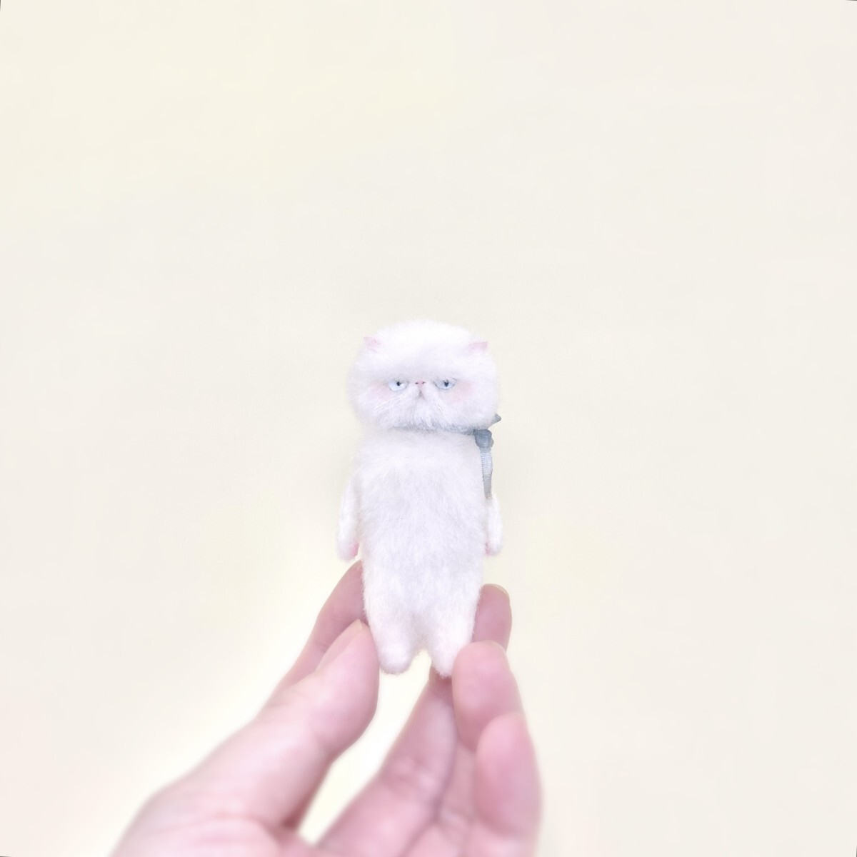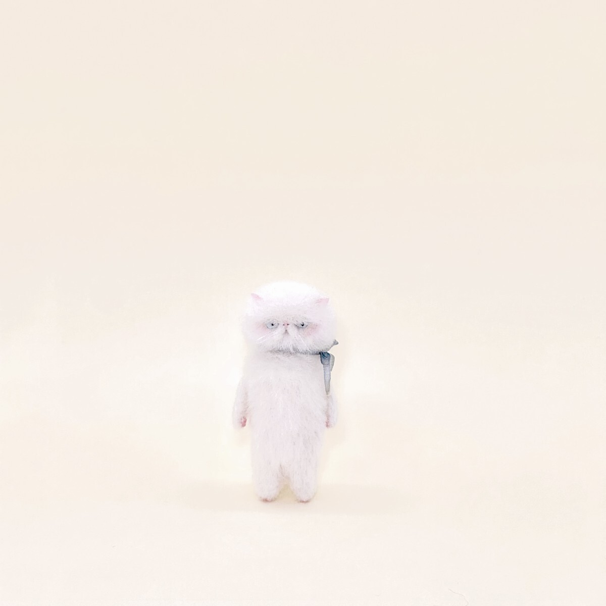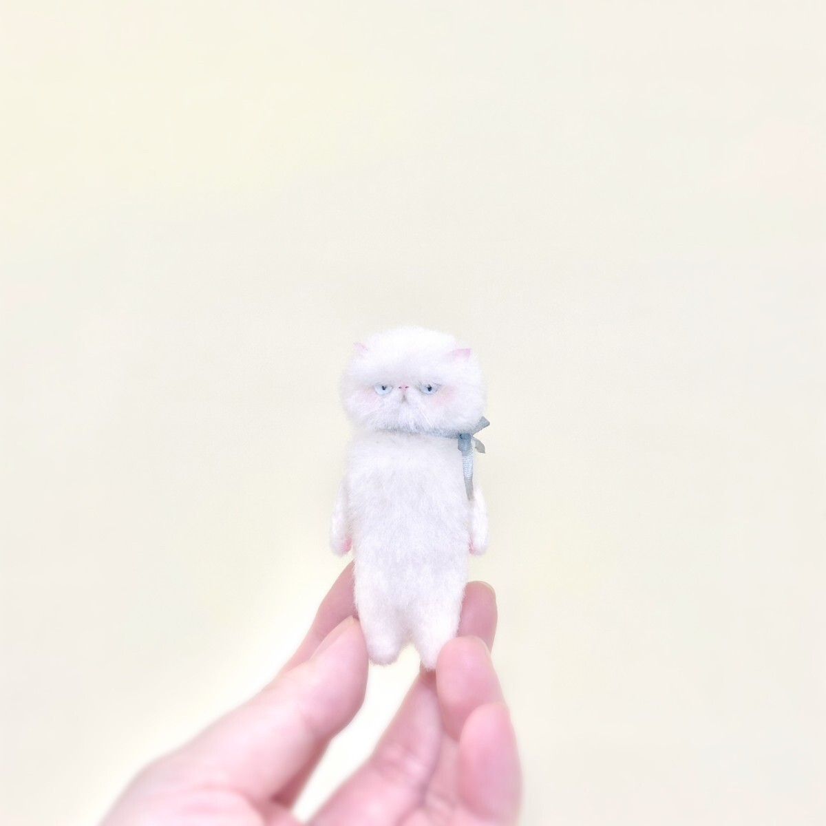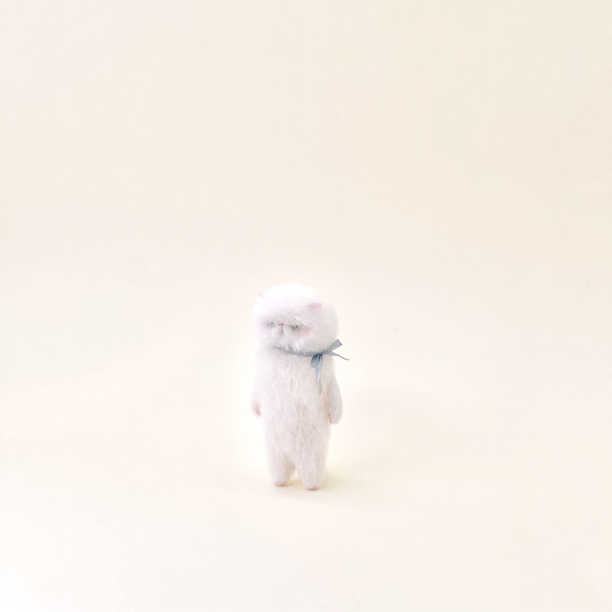 羊毛フェルトで制作した小さなエキゾチックショートヘアの白猫です。