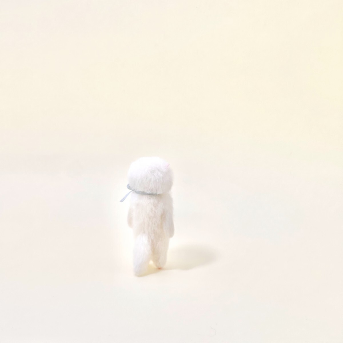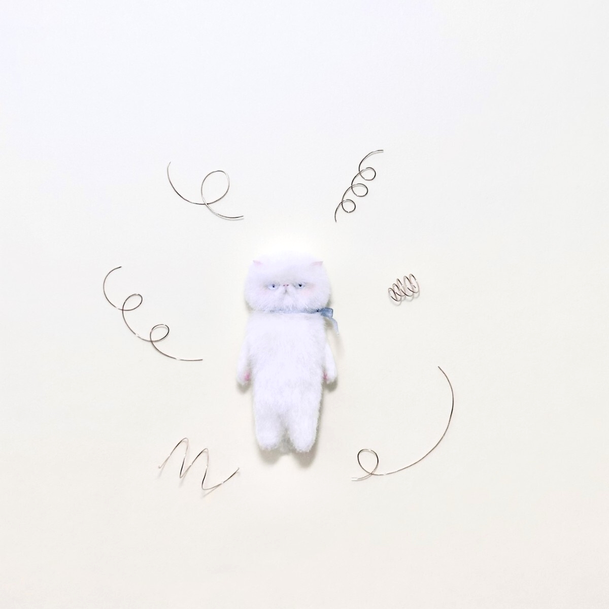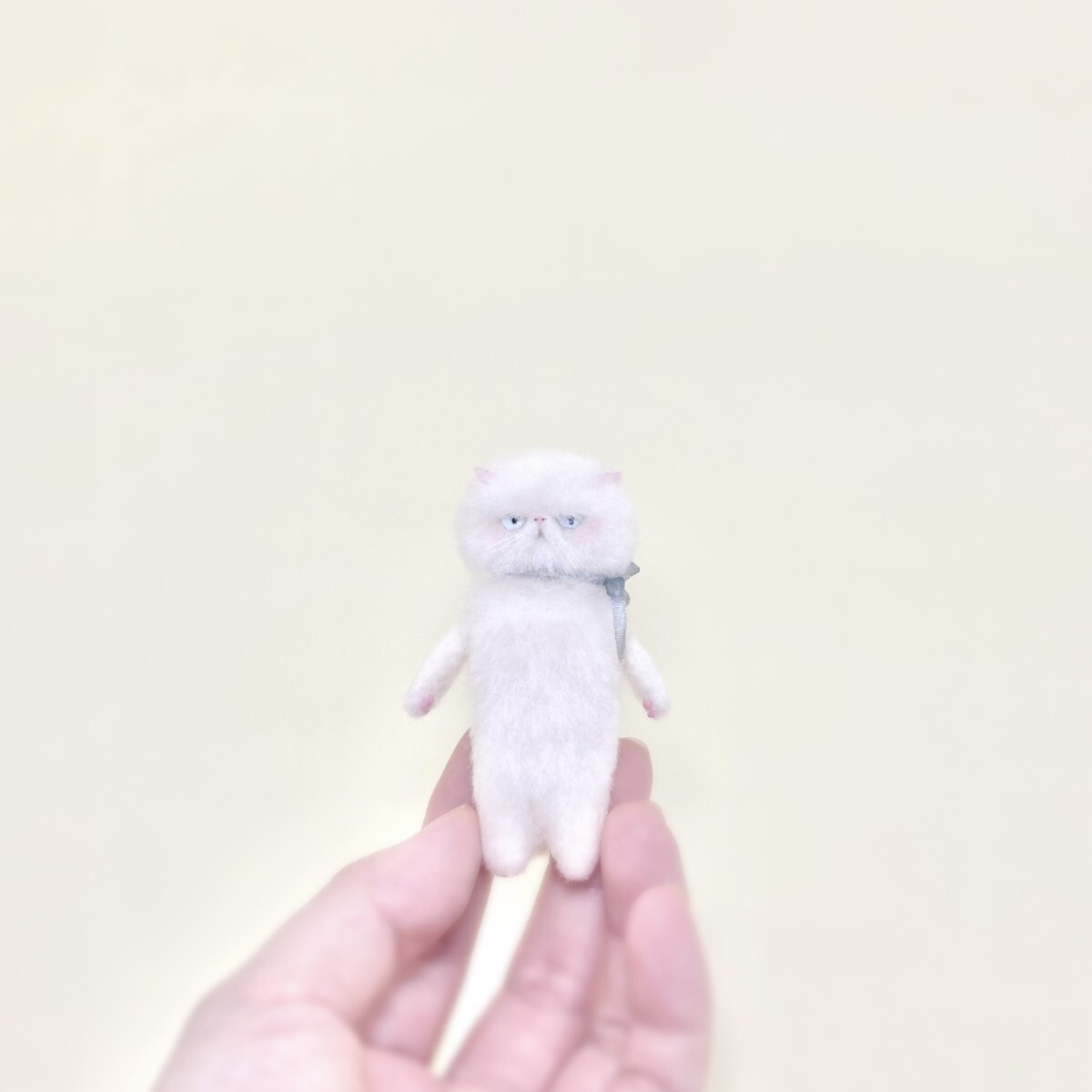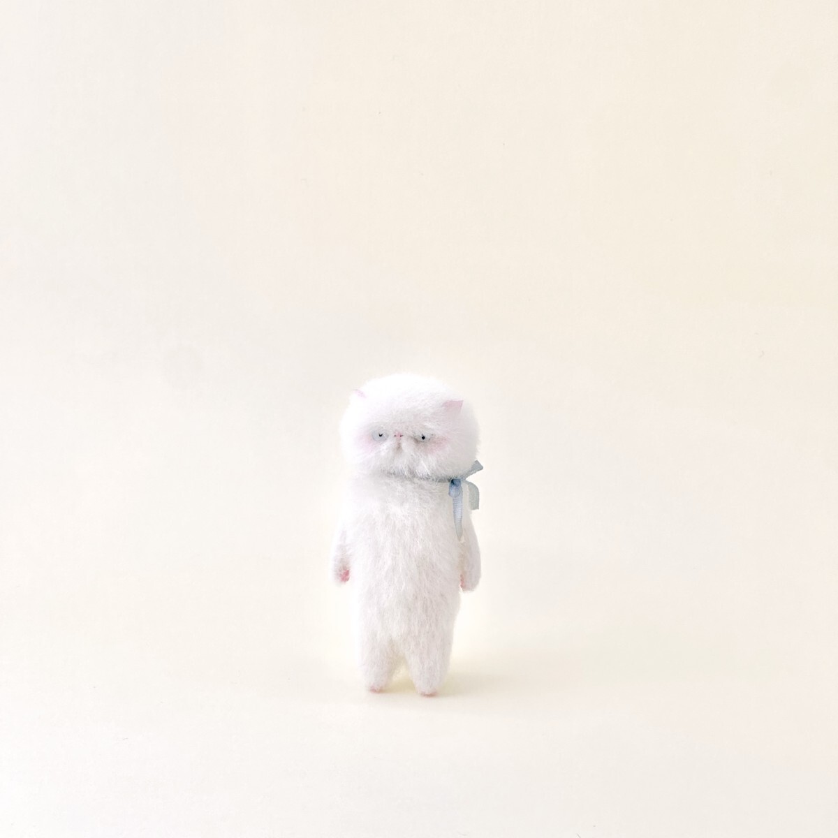 羊毛フェルトで制作した小さなエキゾチックショートヘアの白猫です。