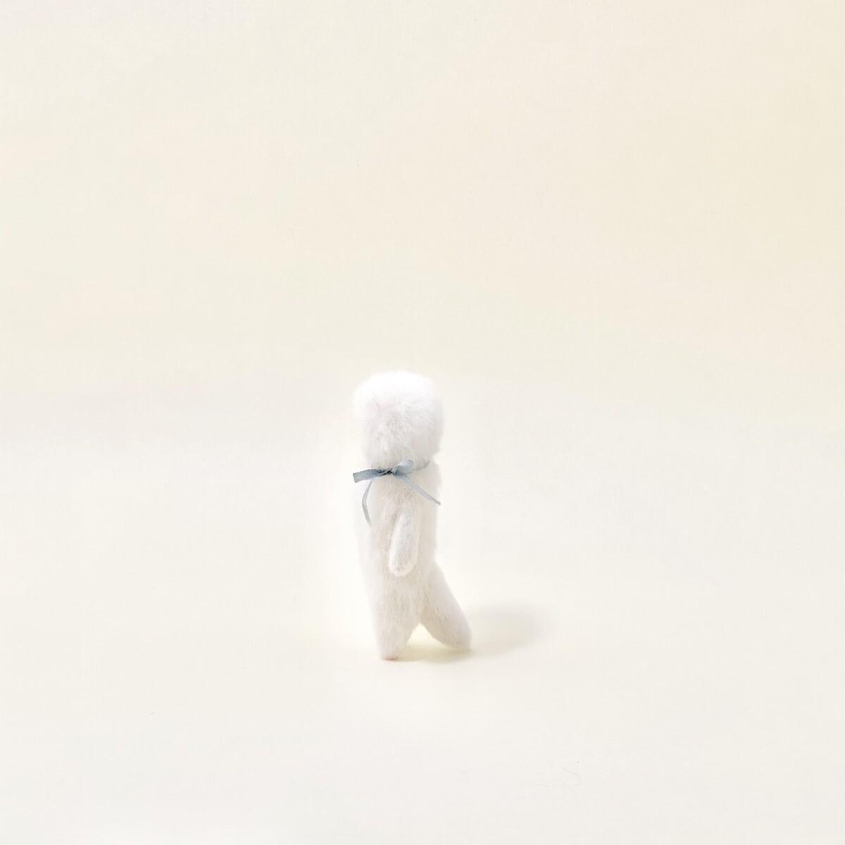 腕にもワイヤーが入っているので少し動かすことができますが、羊毛作品はデリケートですので観賞用として優しくお取り扱いいただければと思います。