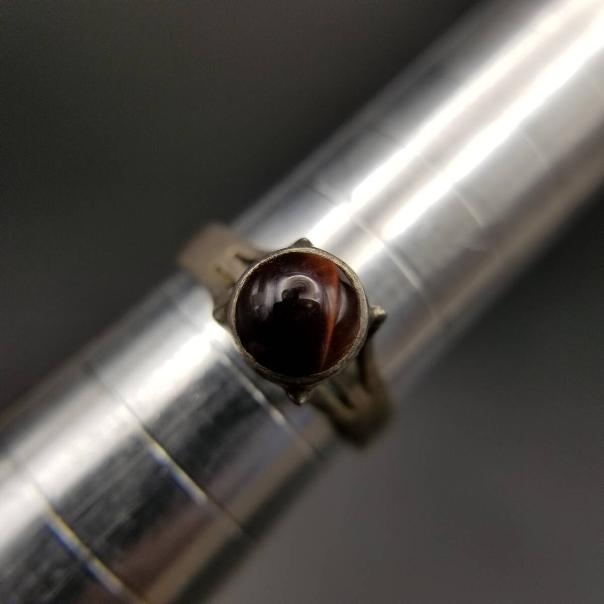 1972年 英国 ヴィンテージ タイガーアイ ラウンドカット 925 シルバー リング 銀 指輪 London ホールマーク レトロ Y24-M