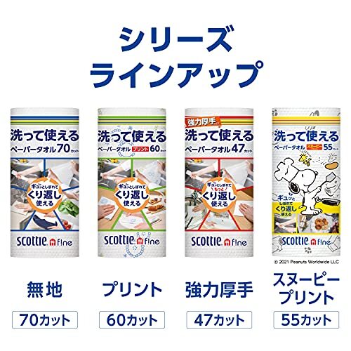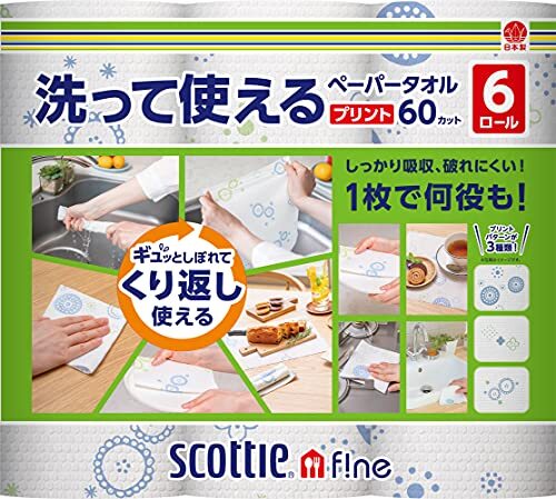 スコッティ ファイン 洗って使えるペーパータオル プリント柄付き 60カット 6ロール