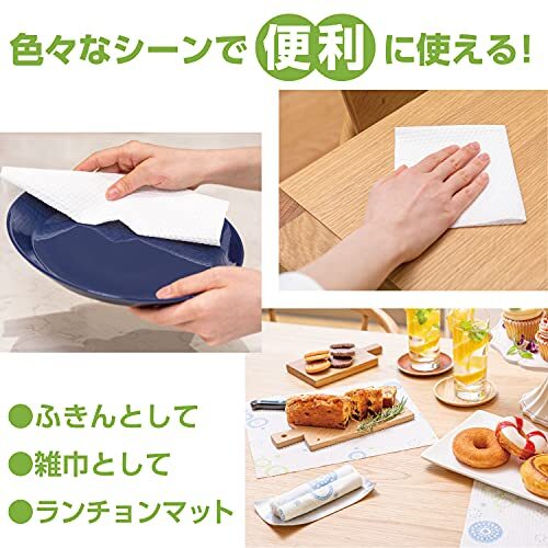 説明 水に濡らしても破れにくい、丈夫なペーパータオルです。布のような丈夫さと紙のような吸収性をもつ不織布タイプ。ギュッとしぼれて繰り返し使えて経済的。ふっくら厚手シート。食器拭きに、ランチョンマットに、布巾・ぞうきんに、キッチンまわりのおそうじに、リビングのおそうじにまで、幅広く活躍します。ポップなプリント柄付き。まとめ買いにお得な6ロール入り。