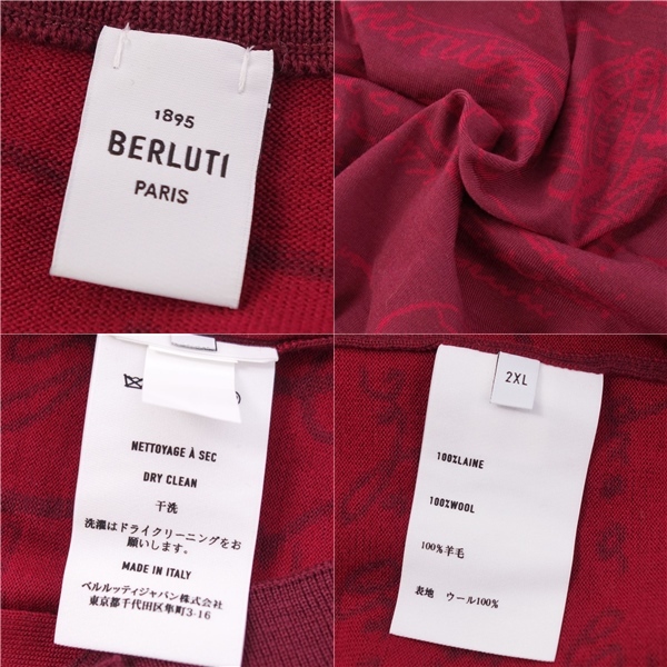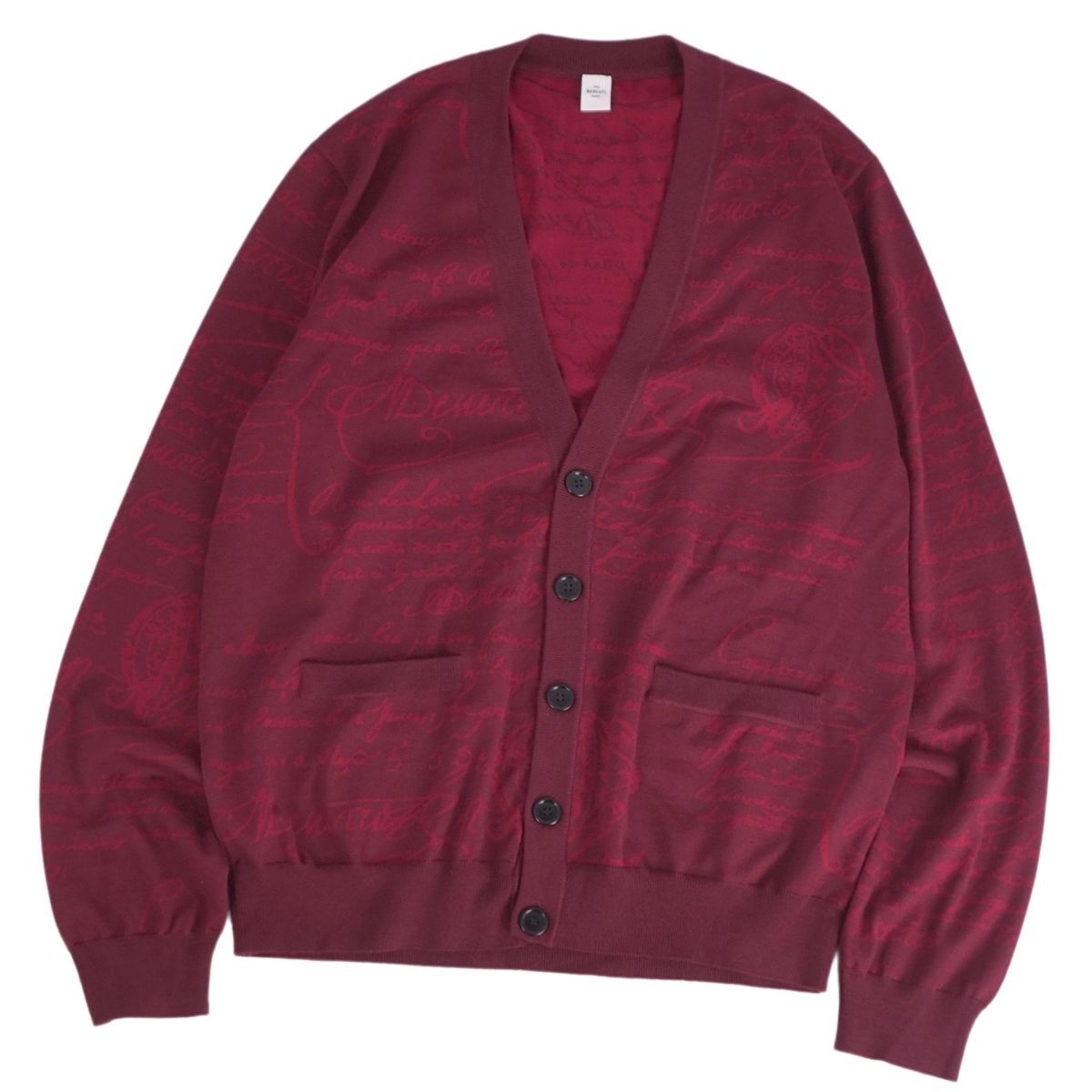 | 極美品 ベルルッティ Berluti カーディガン ニット カリグラフィ スクリット ウール トップス メンズ 2XL レッド |