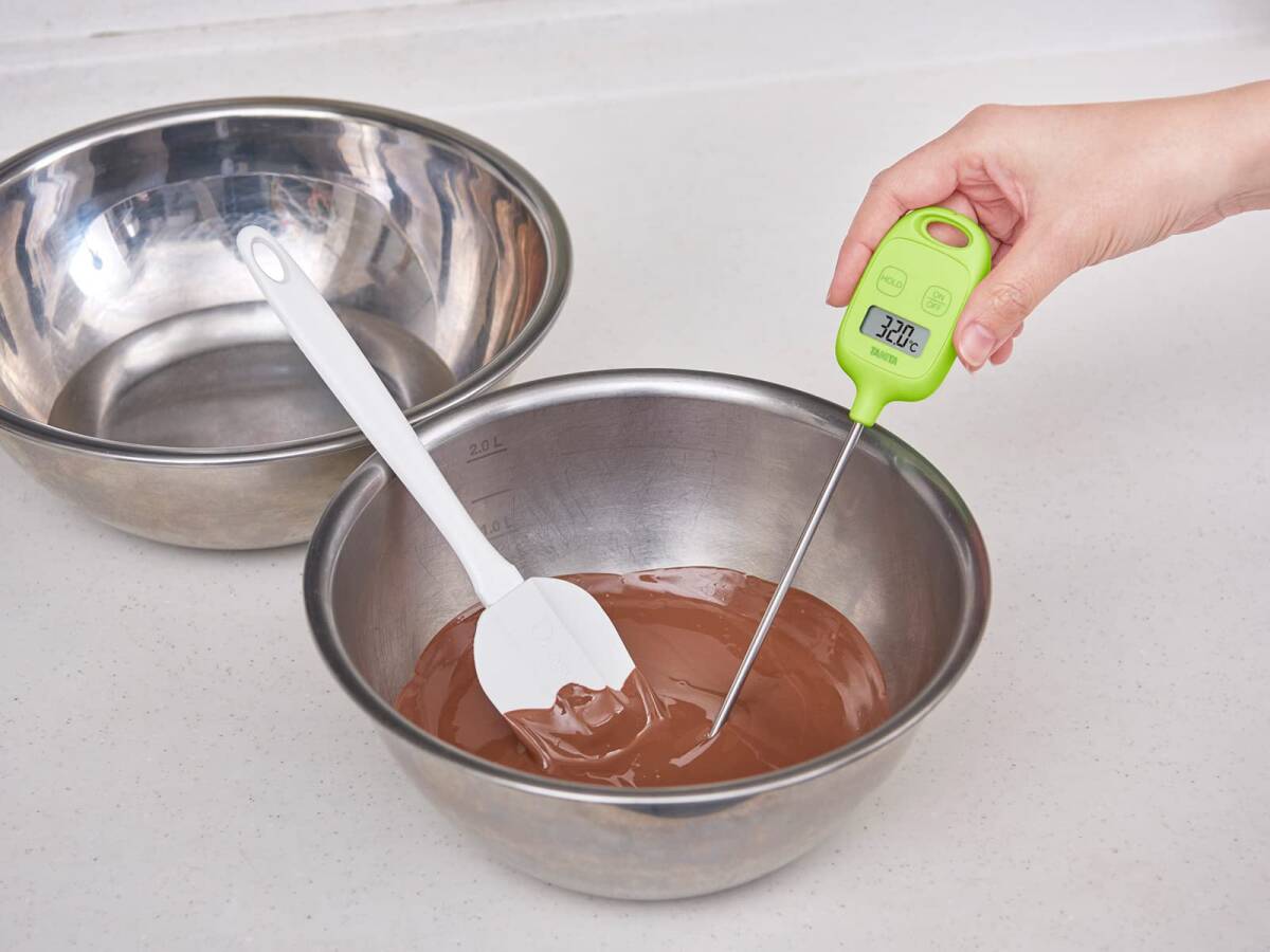 センサーが140mmなので、火元から手を離して測定できる 持ち手になるセンサーホルダー。フック穴にセンサーホルダーを差し込んで使うことでより手元を離すことができる 空間収納が可能なマグネット、フック穴付き 左手で持っても右手で持っても表示部が見やすい はかった温度の表示を固定して確認できる、ホールド機能付き