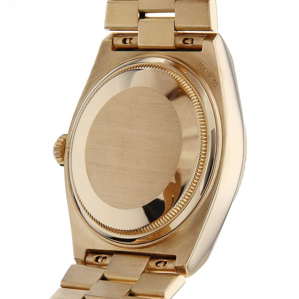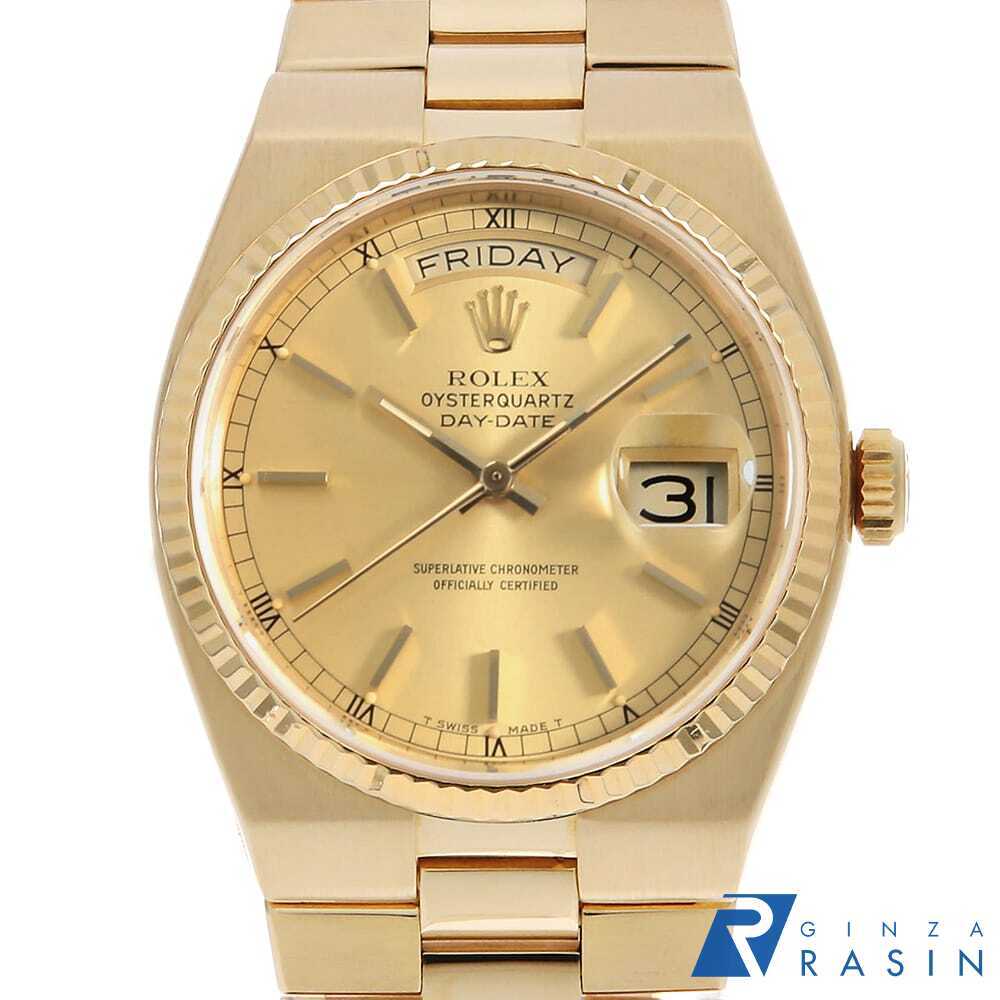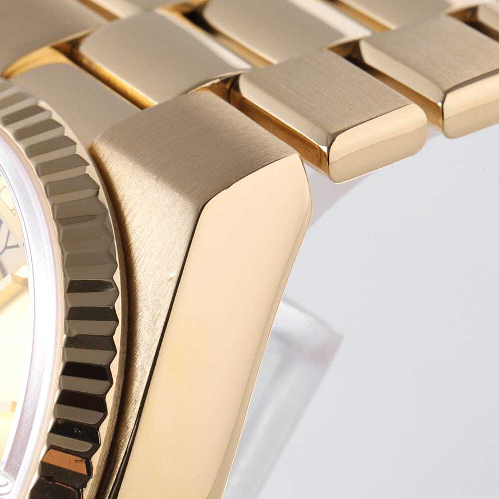 モデル情報 | ロレックスといえばオイスターケース、パーペチュアルが定番ですが、こちらはクォーツ。当時のクォーツショックに対抗したロレックスの異端児的なモデルです。ブレスレットとシームレスになったケースフォルムは通常のオイスターモデルとは一線を画しており、目を惹きます。唯一フルカレンダーを搭載している、ロレックスの最上級ライン「デイデイト」が融合された流通量の少ないモデルですので、様々なシーンで注目の的になるのではないでしょうか。 |