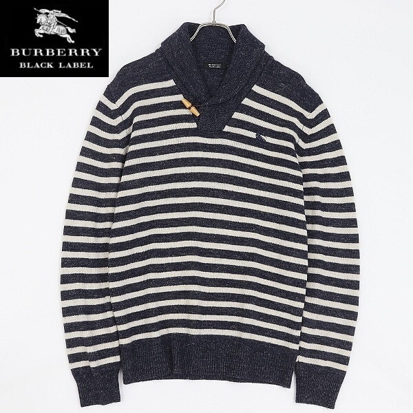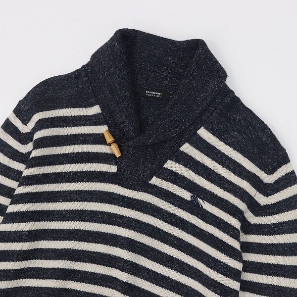 | 【HA306】◆BURBERRY BLACK LABEL バーバリー ブラックレーベル リネン混 ボーダー柄 ロゴ刺繍 ショールカラー ウール ニット セーター 3 | |