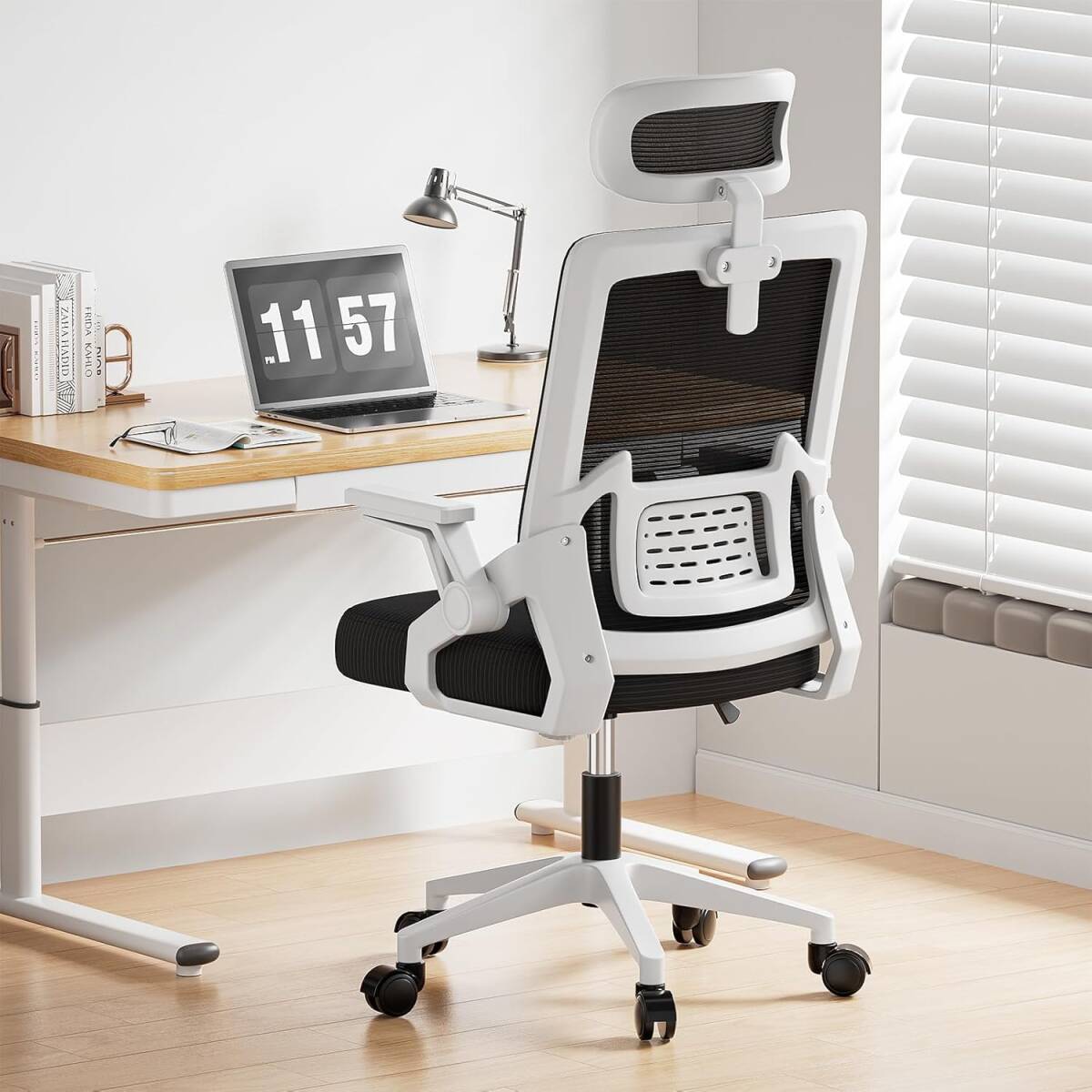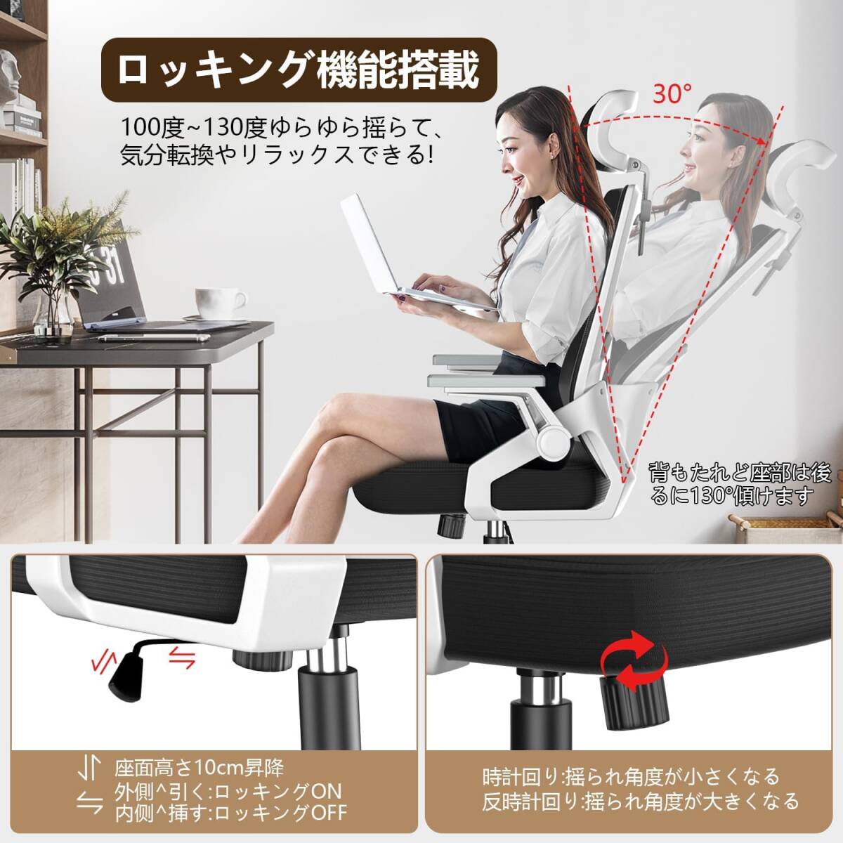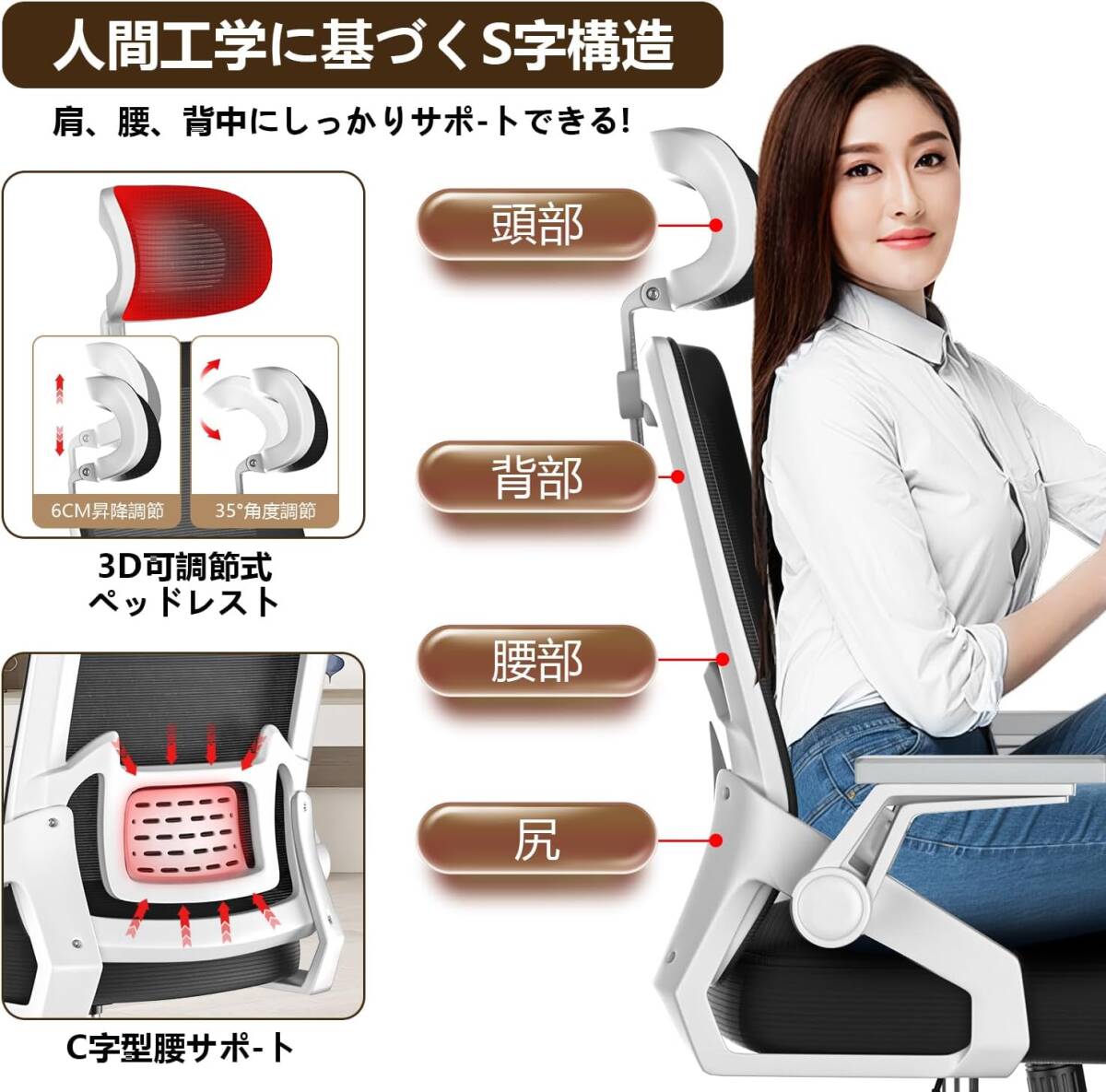 ホワイト色 Dilosso オフィスチェア デスクチェア 腰サポートバー メッシュ通気性テレワーク チェア 疲れない 人間工学