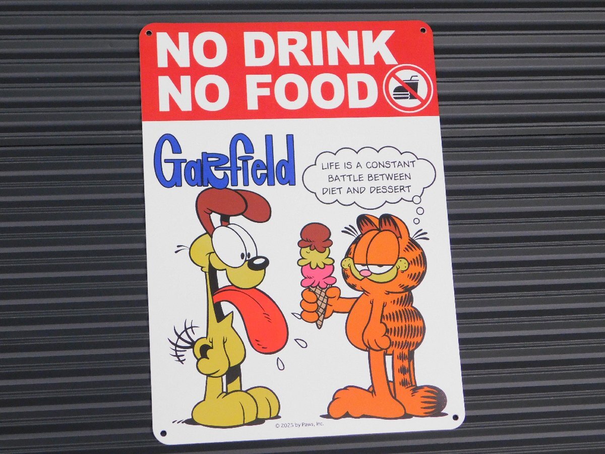 【GARFIELD・ガーフィールド】※《プラスチックサイン・NO DRINK NO FOOD》 ガレージ サインプレート サインボード 看板