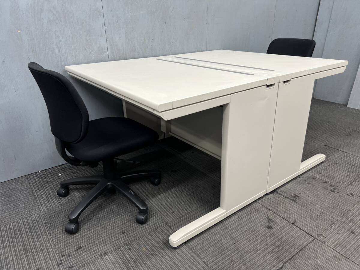 ◆管382◆自社便対応地域あり◆コクヨ製◆平机 2台 幅1100mm◆コクヨ製◆イーザシリーズ◆OAチェアー2脚◆天板 白 ホワイト系