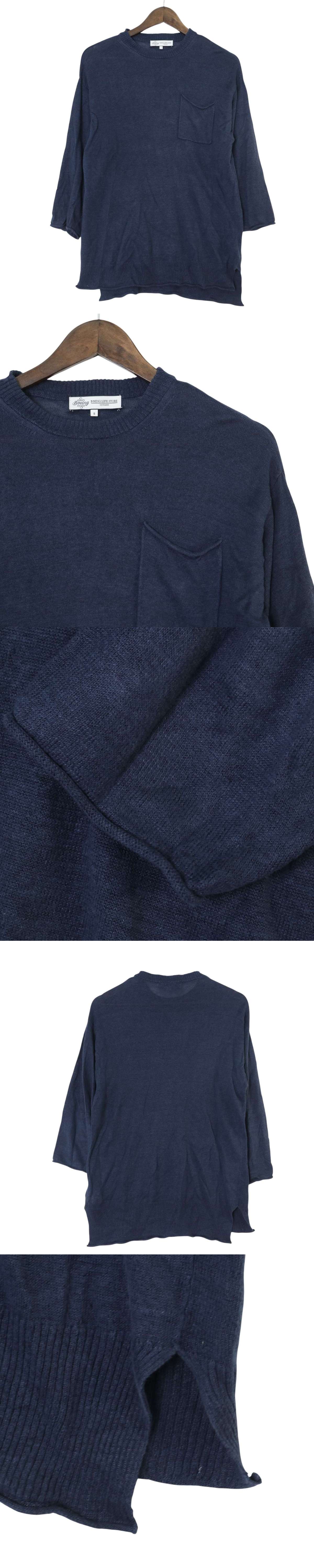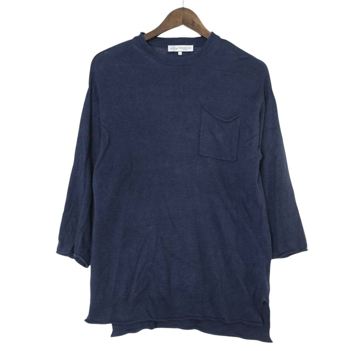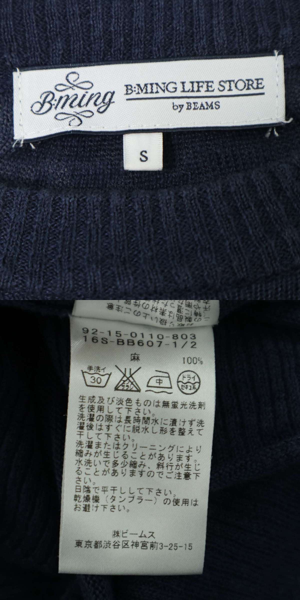 B:MING LIFE STORE by BEAMS ビームス 春夏 ニット★ リネン セーター クルーネック ポケット ニット Sz.S メンズ 紺