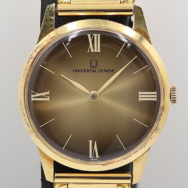 デッドストック級 稼働 良品 ユニバーサルジュネーブ 38118 手巻き ゴールド文字盤 メンズ腕時計 OGH 7502ABC5840010