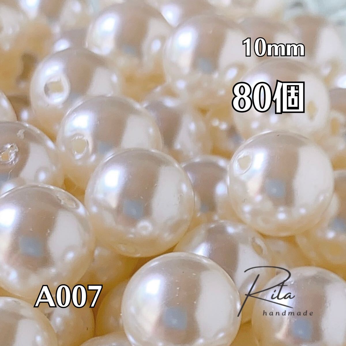 【80個】アイボリー ツヤパールビーズ 10mm 両穴 ハンドメイド アクセサリーパーツ